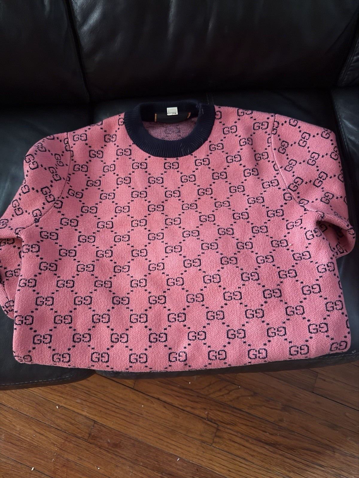 Gucci monogram Unisex Sweater XL Pink/Navy Perfect For Valentine's Day Preowned