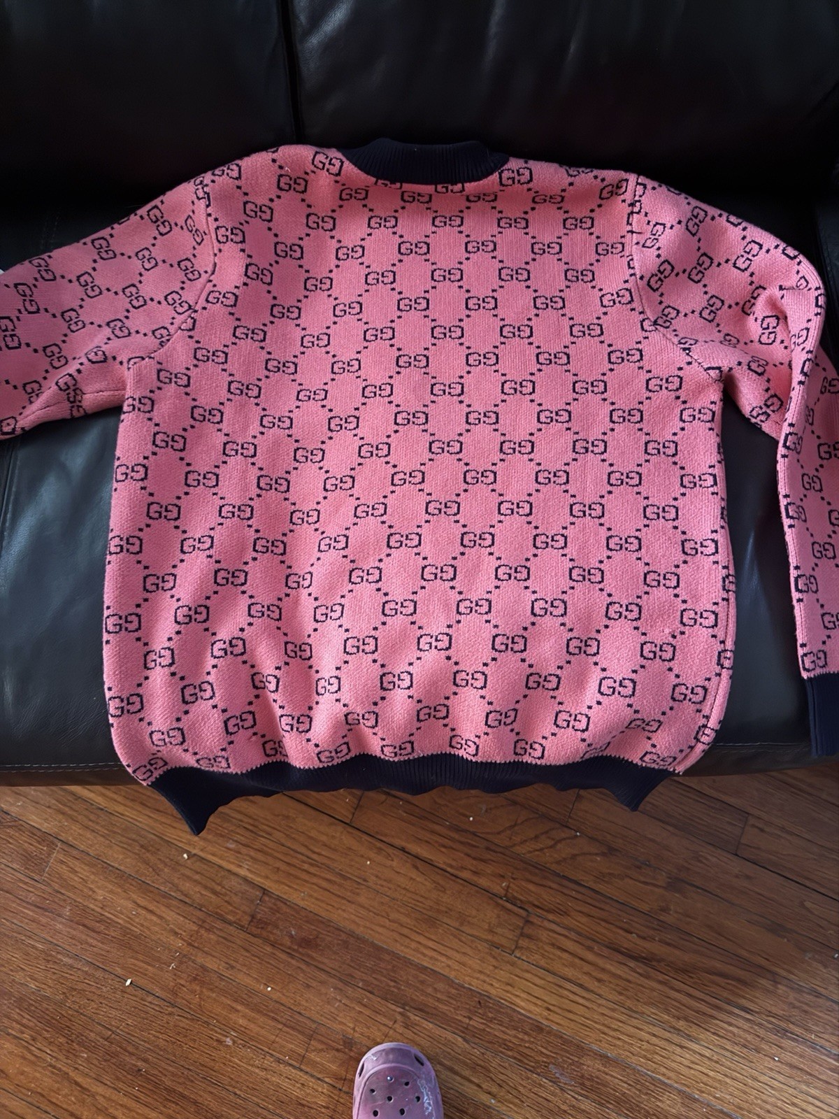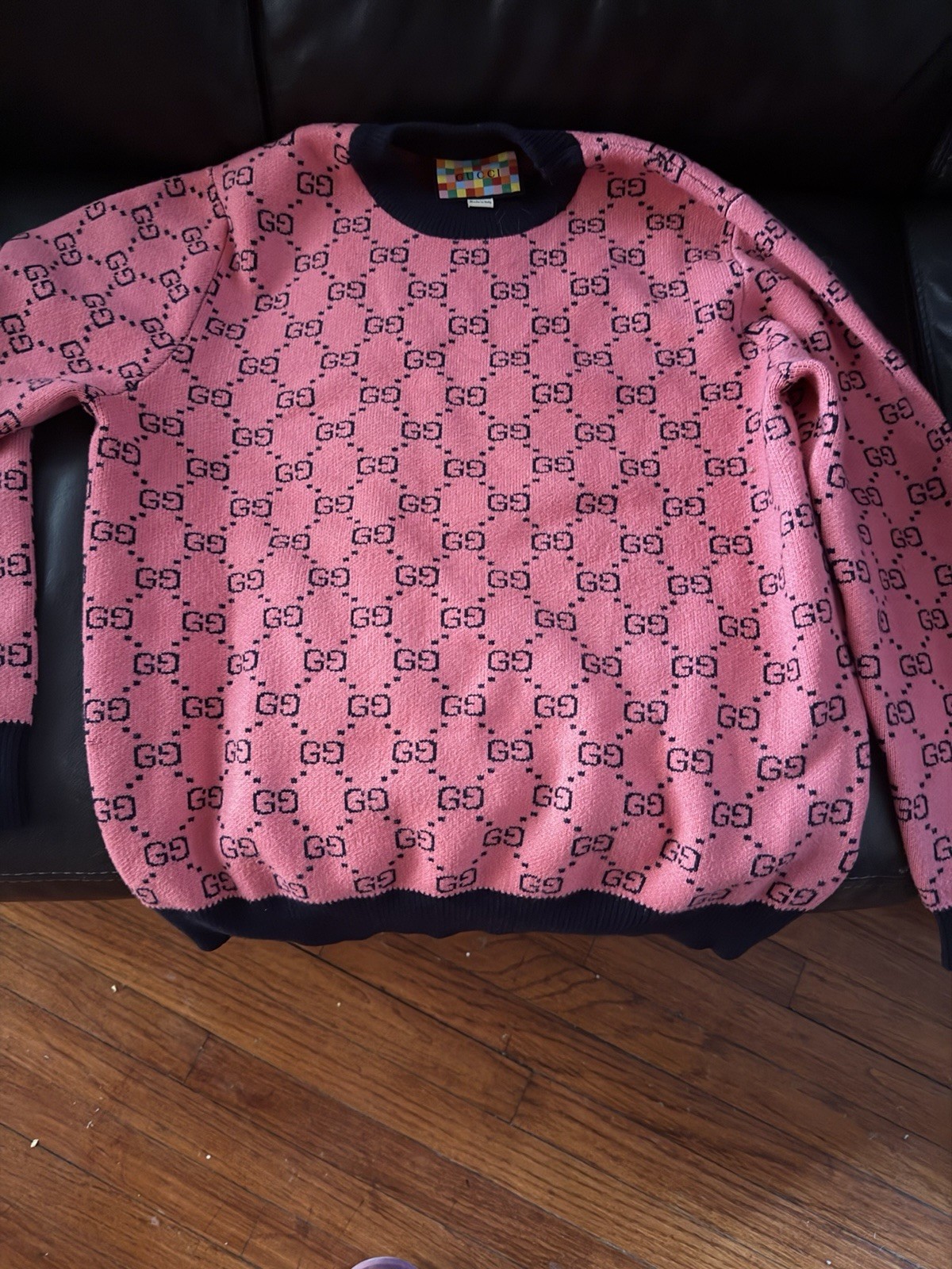 как выглядит Gucci monogram Unisex Sweater XL Pink/Navy Perfect For Valentine