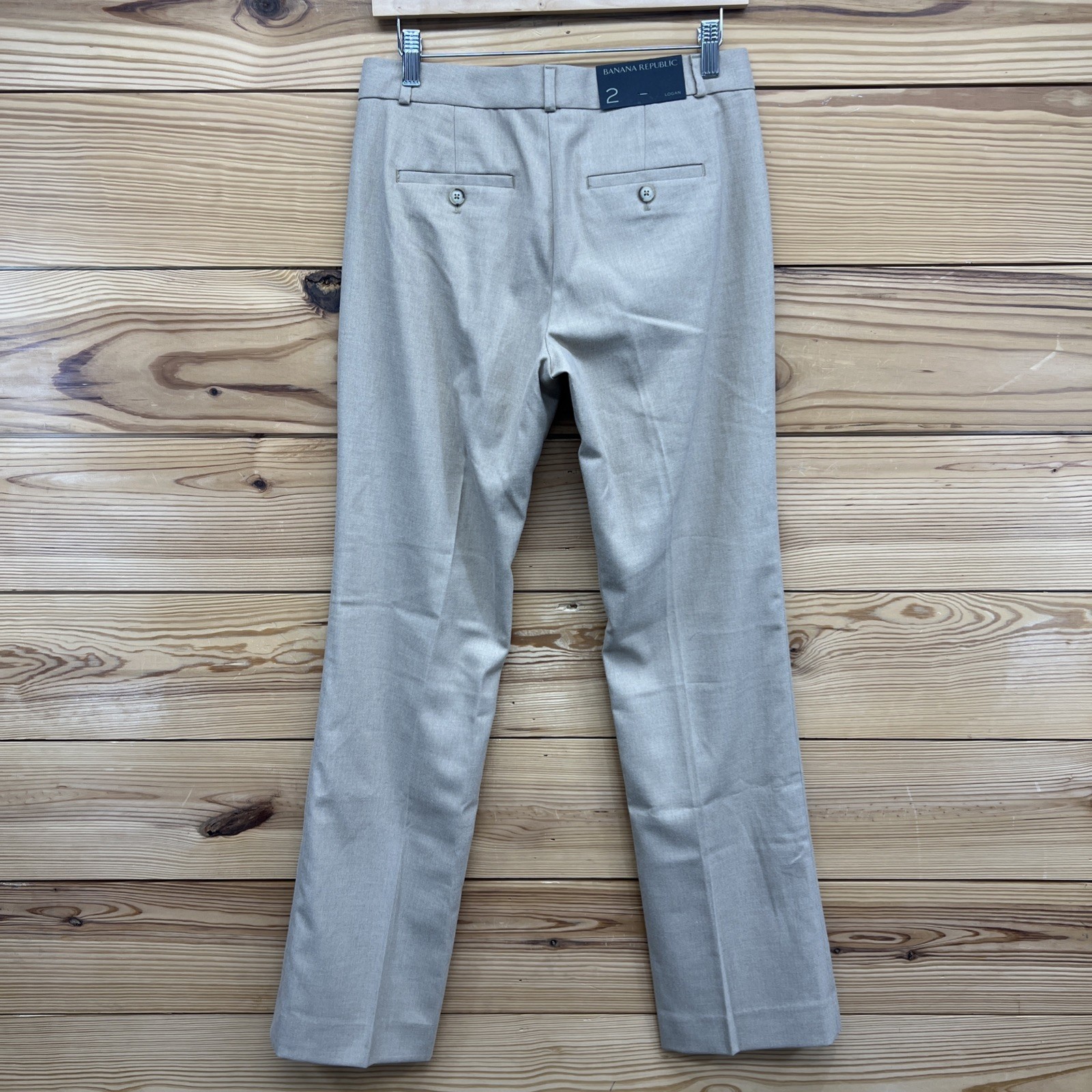 как выглядит Banana Republic Dress Pants 2R Logan Mid Rise Straight Trouser Beige NWT B158 фото