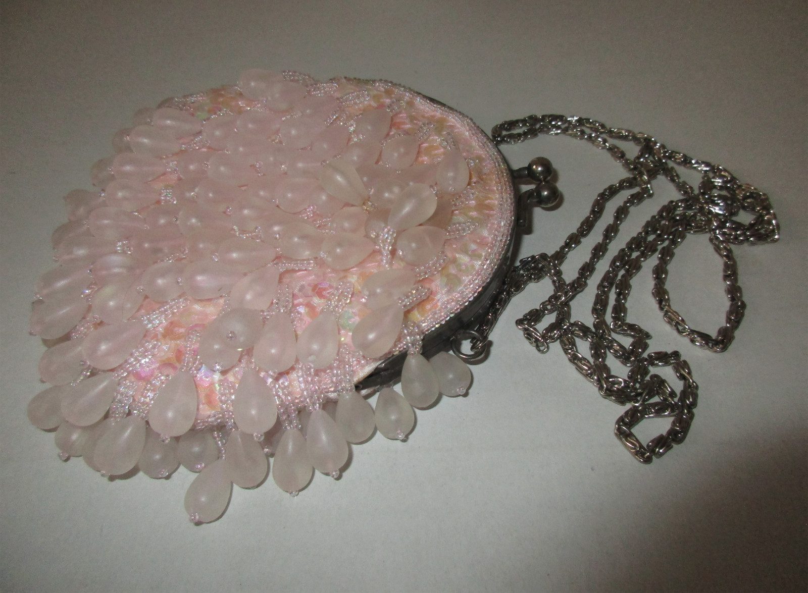 как выглядит Vintage 80s La Regale Peach Pink Beaded Sequined Evening Purse фото