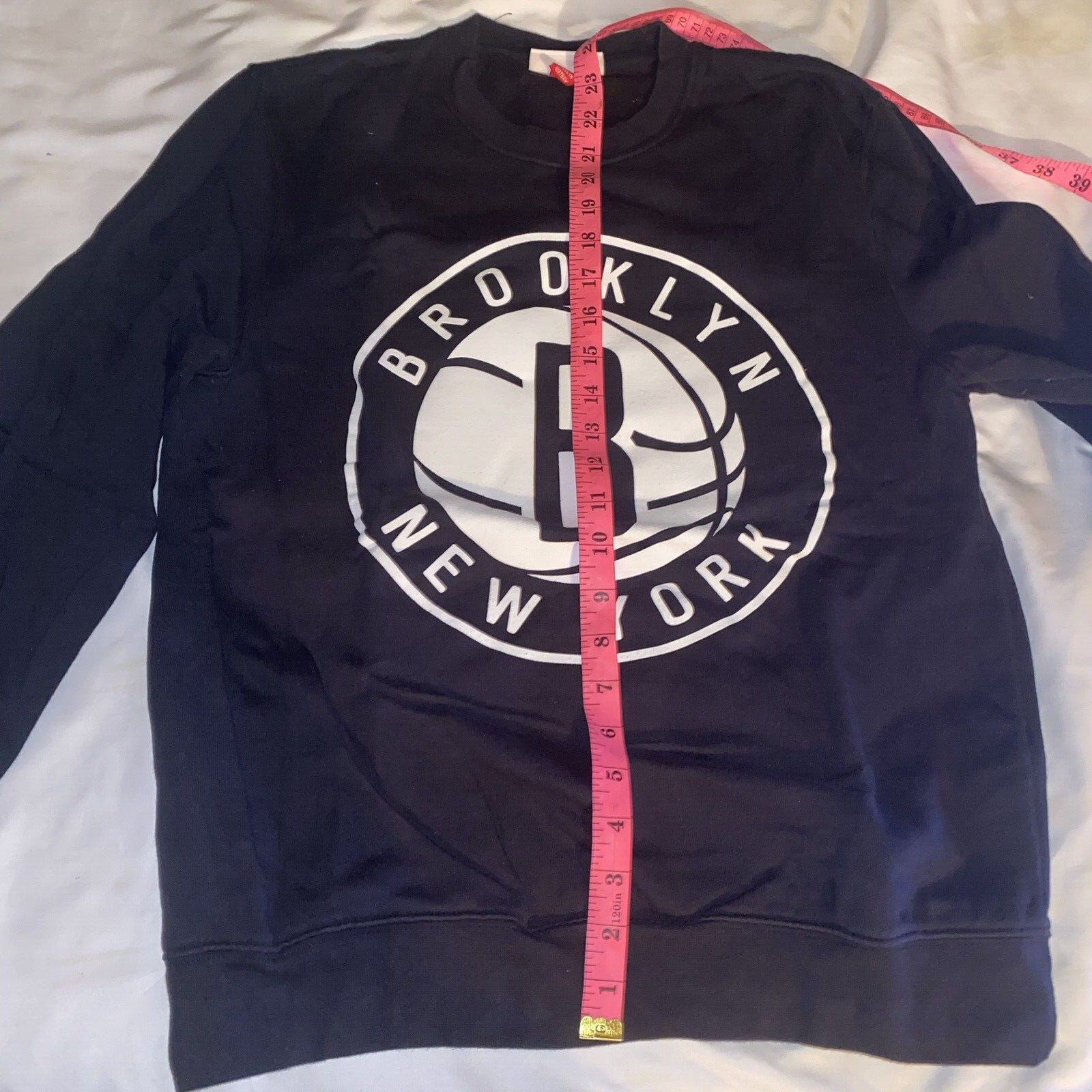 Mitchell Ness Brooklyn Nets Basketball Crewneck Sweatshirt Black Size Small