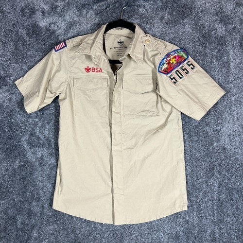 как выглядит Boy Scouts of America Cub Scout Uniform Youth Shirt, SZ Medium, PATCHES GLUED ON фото