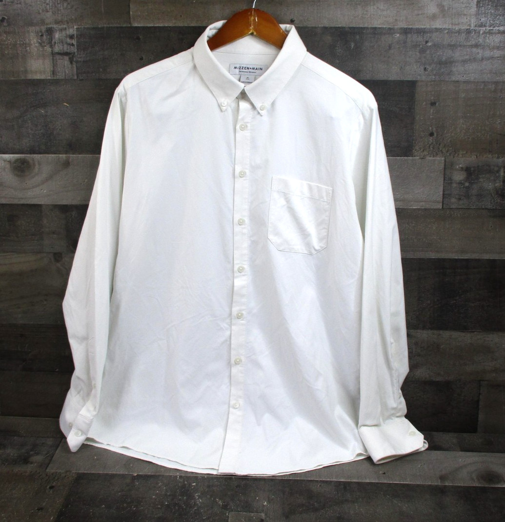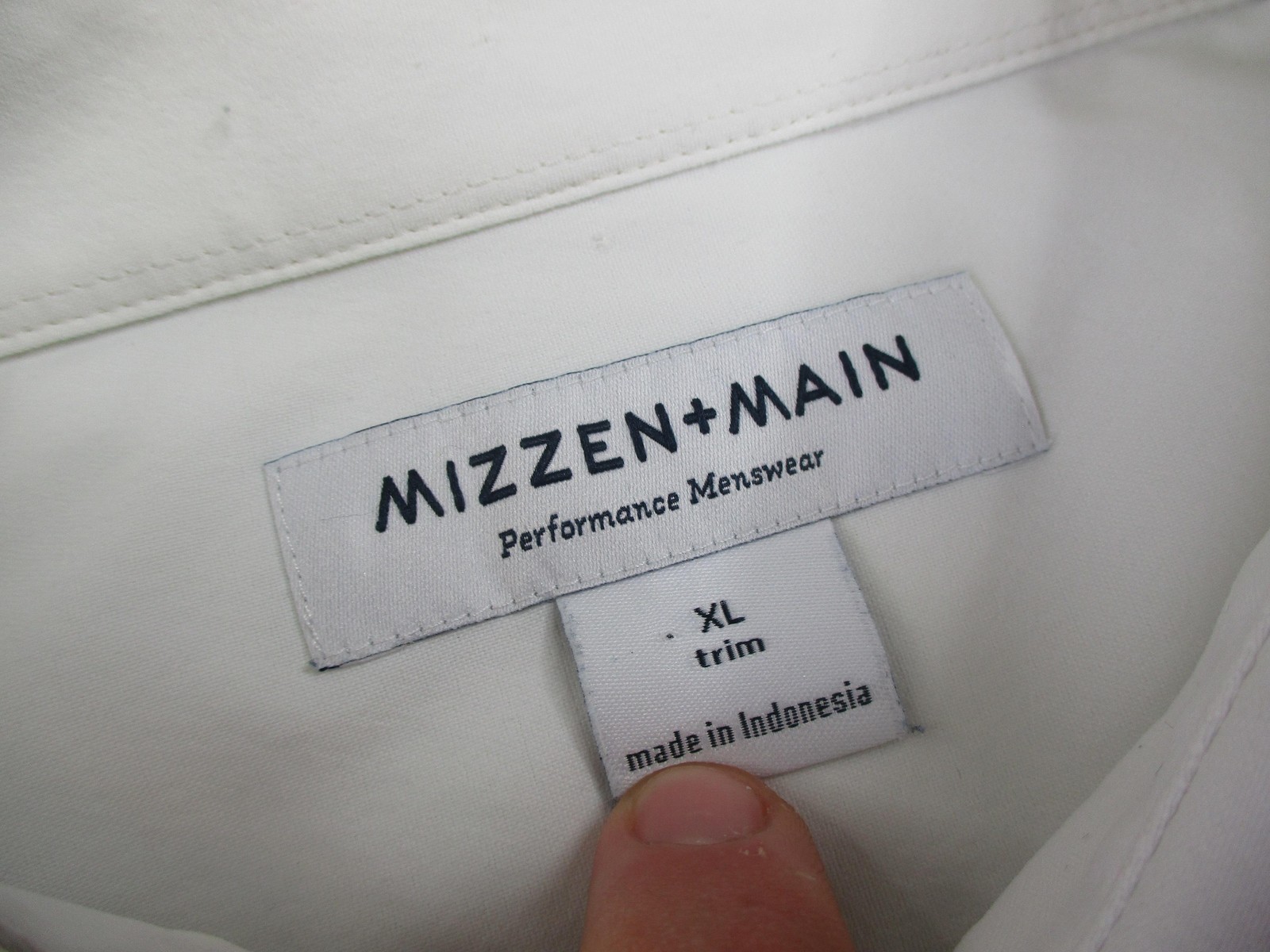 как выглядит Mizzen Main Dress Shirt Mens XL White Trim Fit Performance Long Sleeve Stretch фото