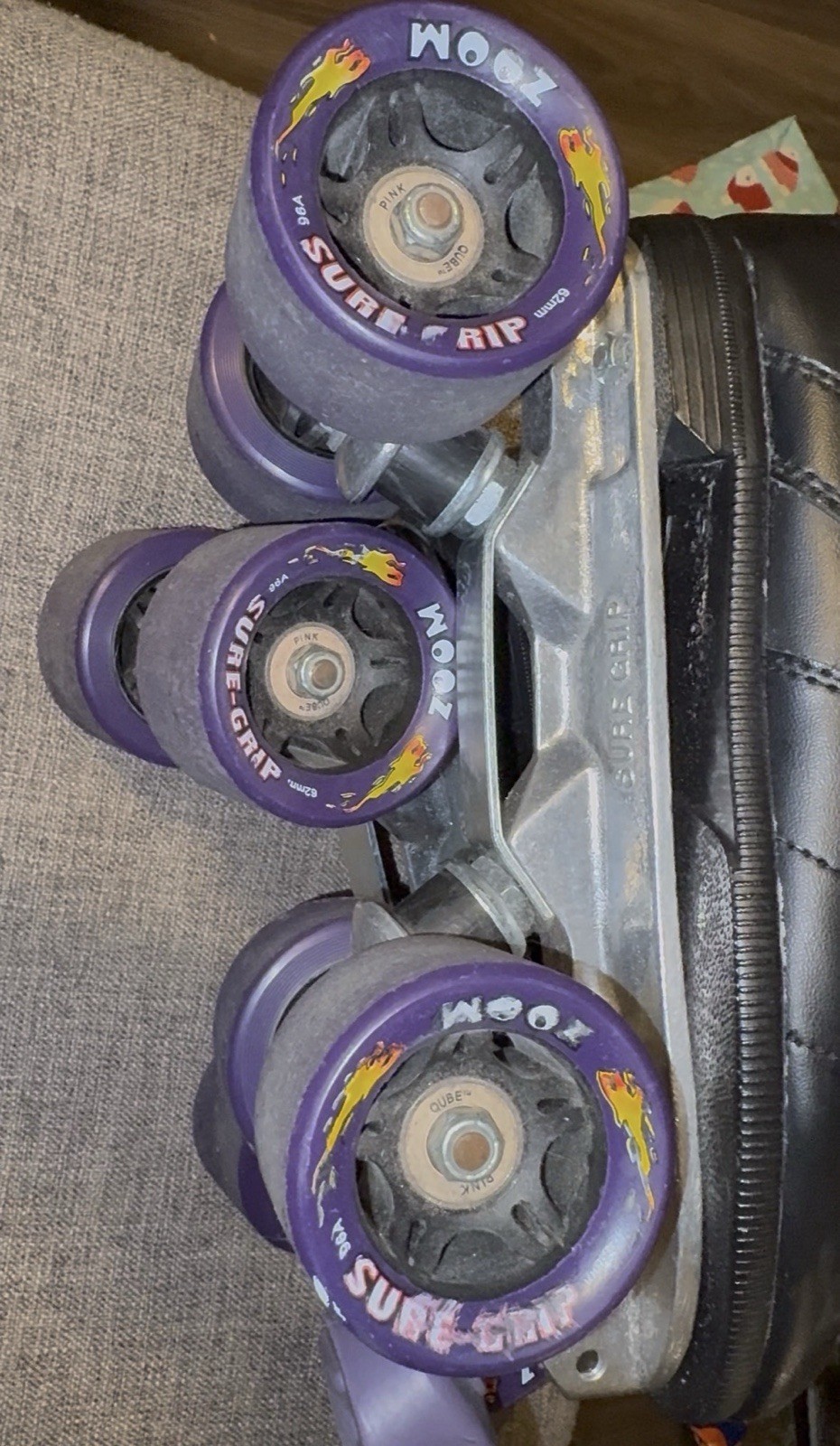 Sure-Grip Rock GT-50 roller skates with purple Sure-GripZoom wheels Size 6