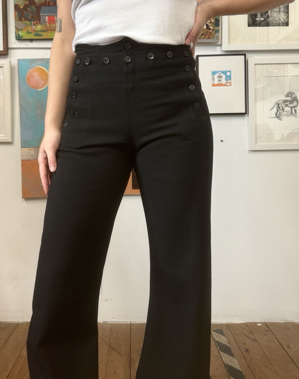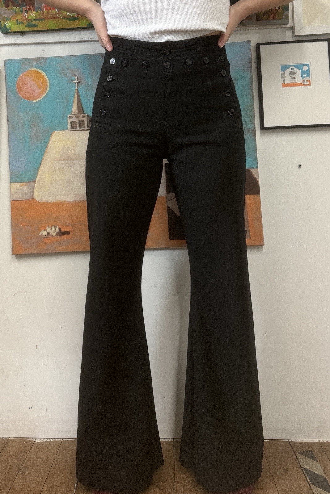 Vintage 1940s WWII Sailor Pants US Navy Uniform Trousers 13 Button 29 Waist