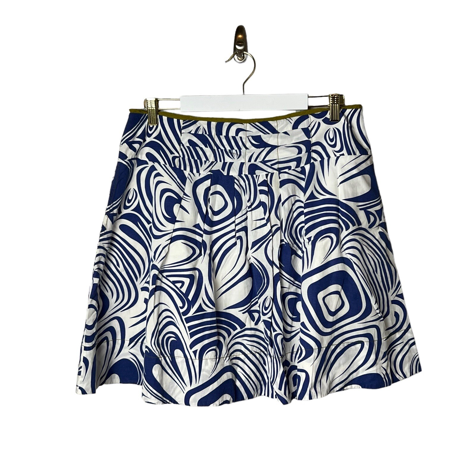 CAbi Lombard Skirt ALine Pleated Lined Women s Size 12 Swirl Blue White Cotton