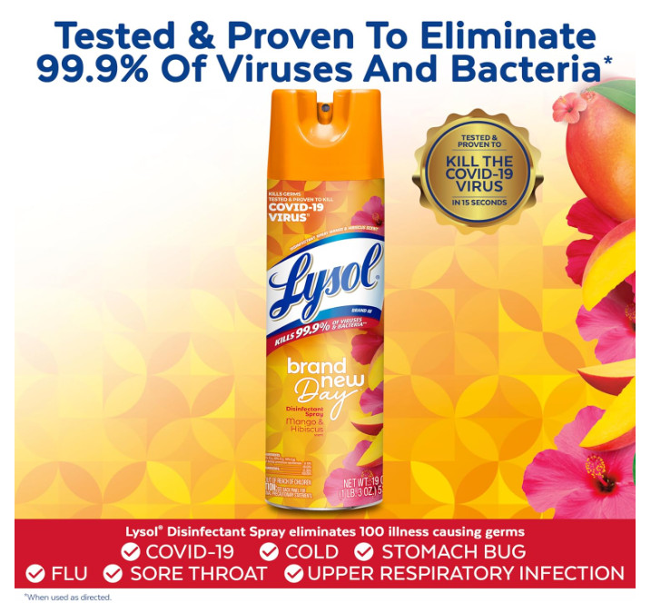 как выглядит 2-PACK Lysol Disinfectant Spray, Antibacterial, Mango Hibiscus Scent, 19 fl oz фото