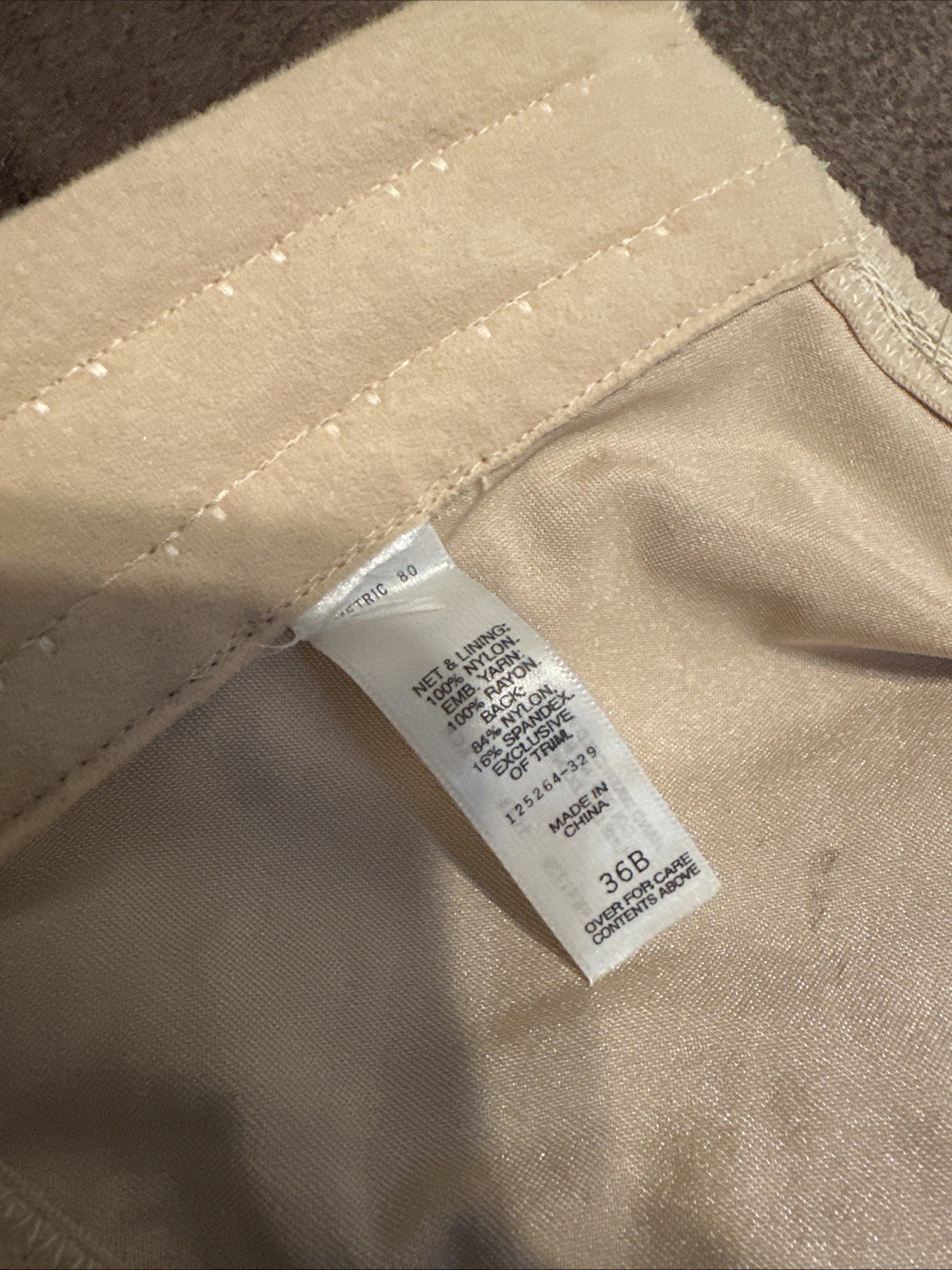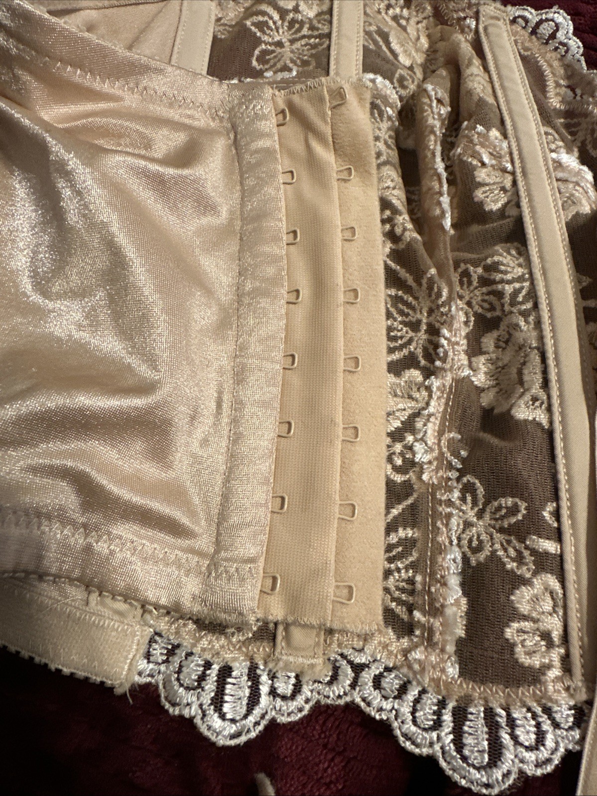 VTG Victorias Secret Corset Tan Beige 36B white Embroidered flowers Bustier Top