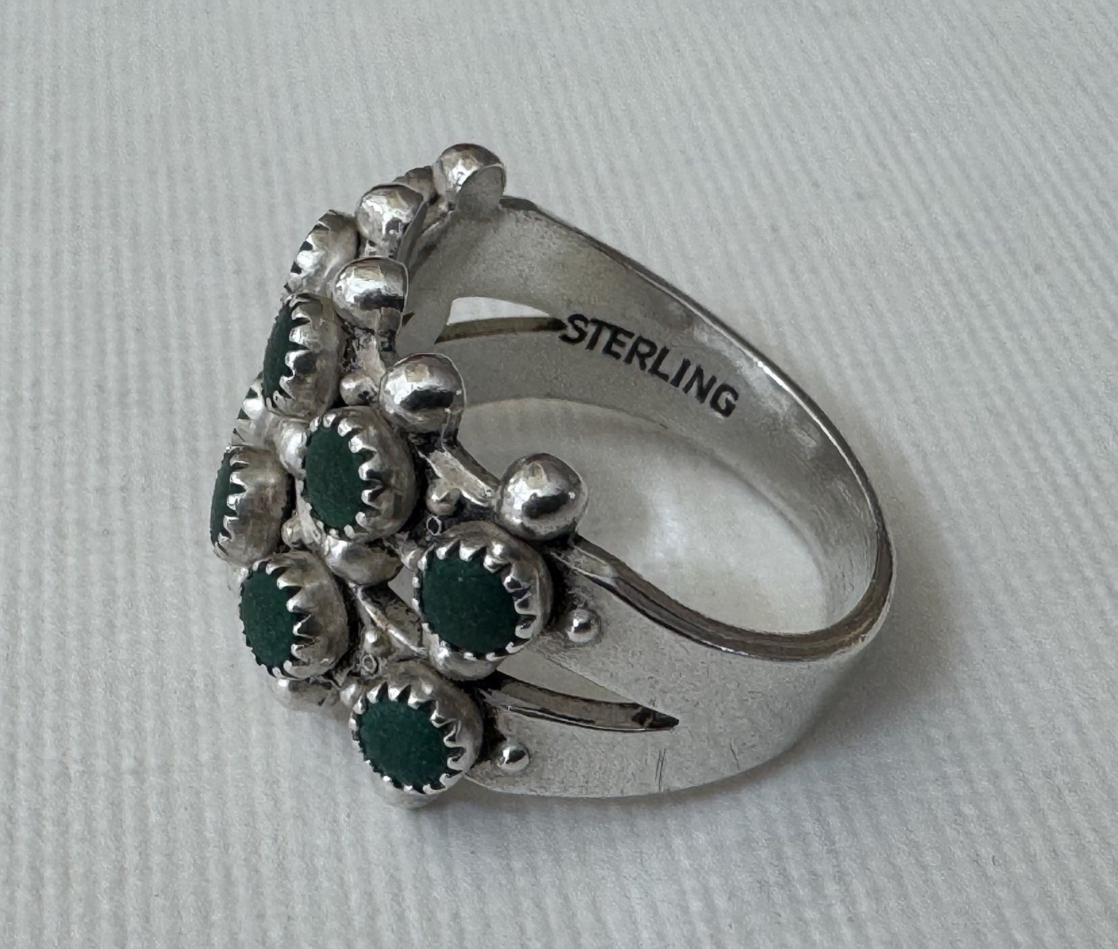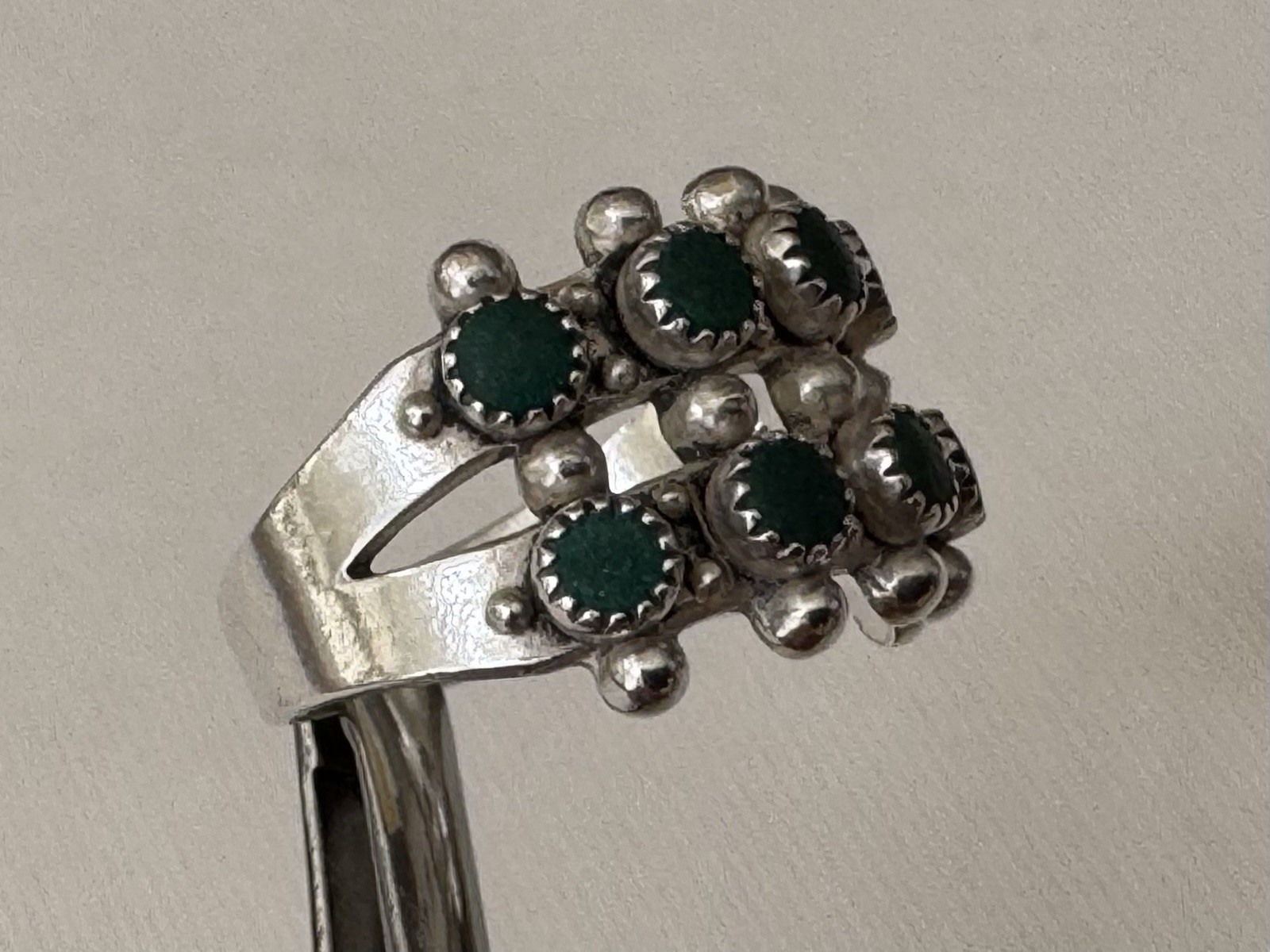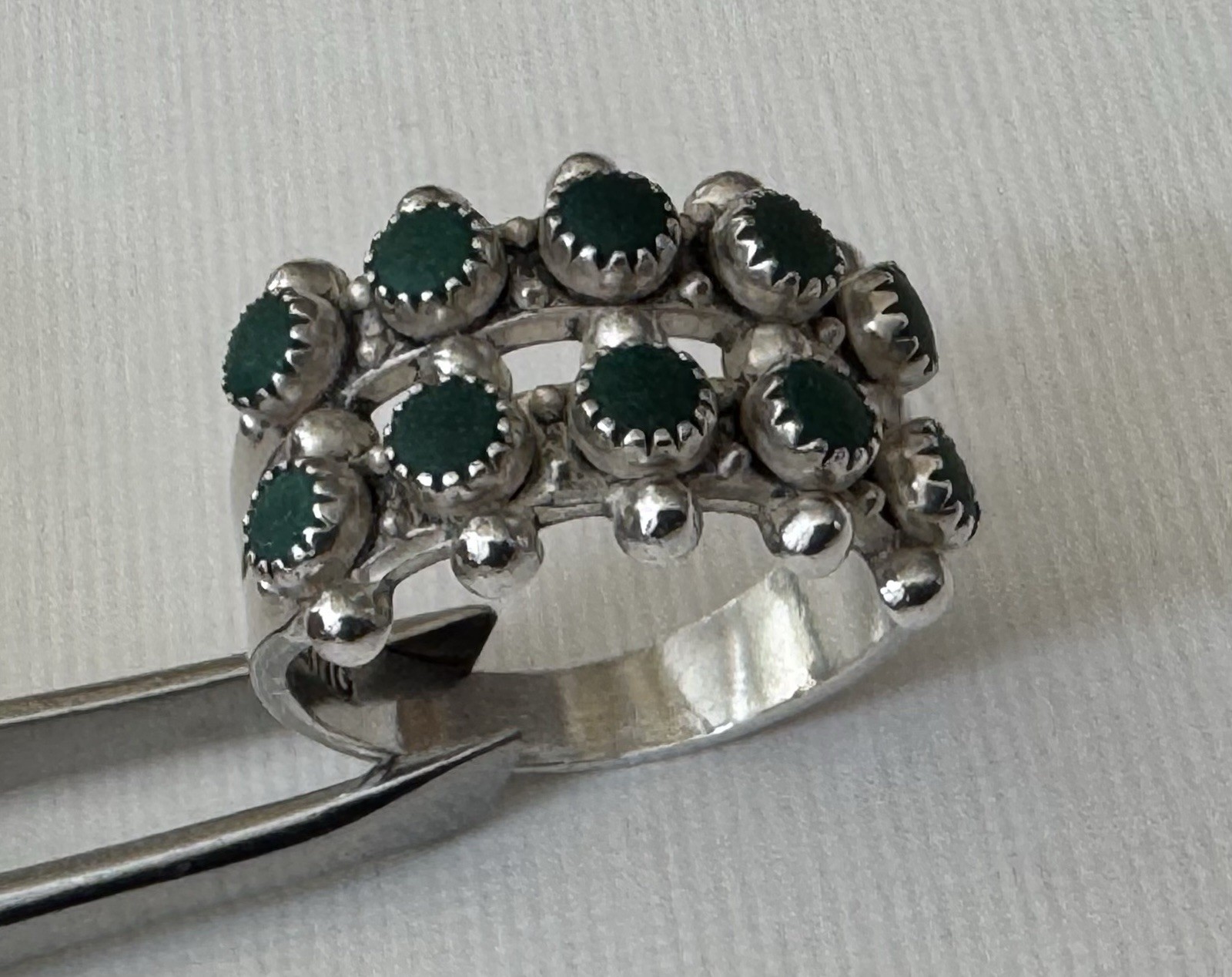 Sterling Silver Native American Unbranded 2 Row Green Turquoise Dot Size 6 Ring