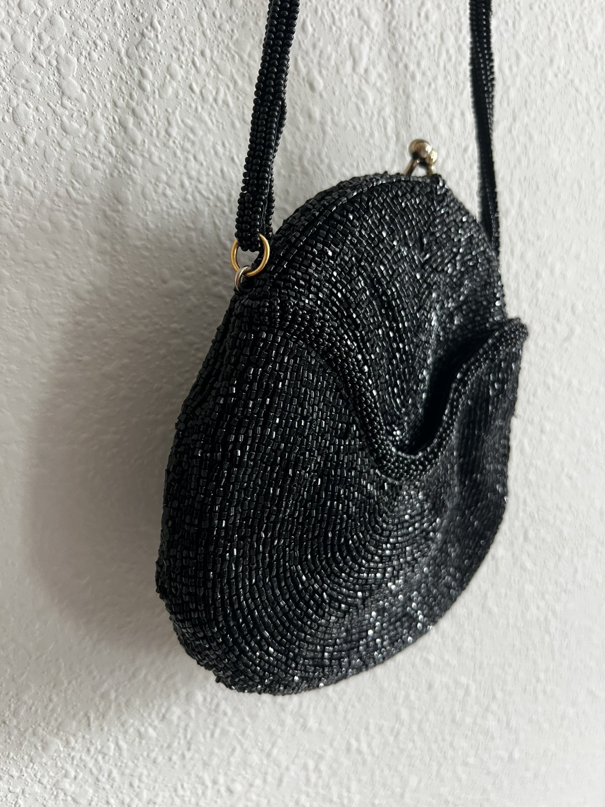 Vintage Walborg Black Beaded Handbag Mid 20th Century Chic Classy Evening Bag