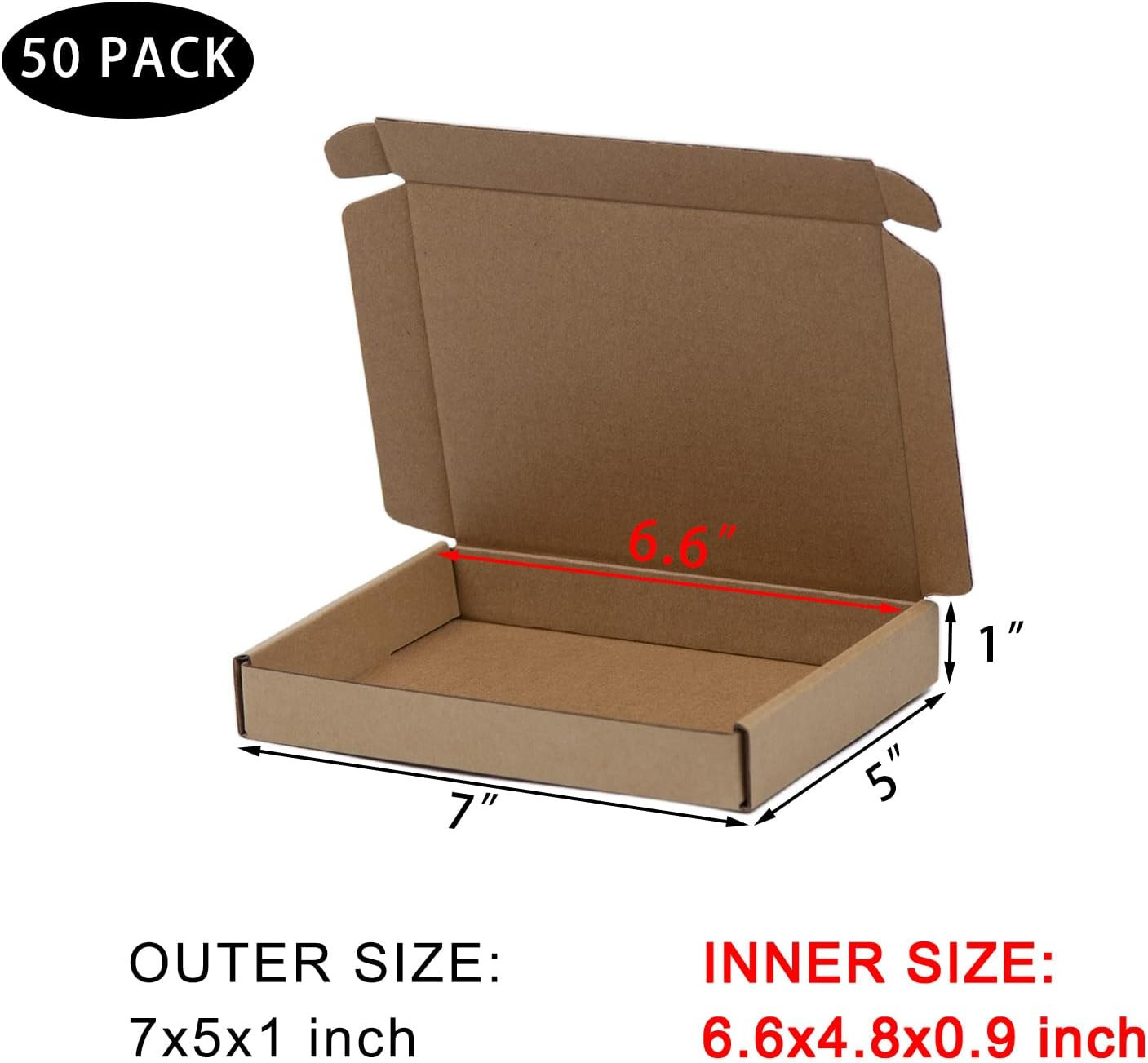 50 Pack 7X5X1 Inches Small Shipping Boxes, Brown Corrugated Cardboard Boxes, Mov