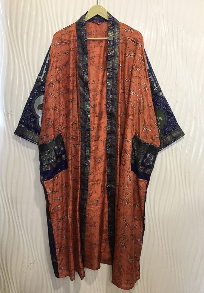 как выглядит Pure Silk Orange kimono Long Robe Gown Girls Woman Silk Kimono KMO5496 фото