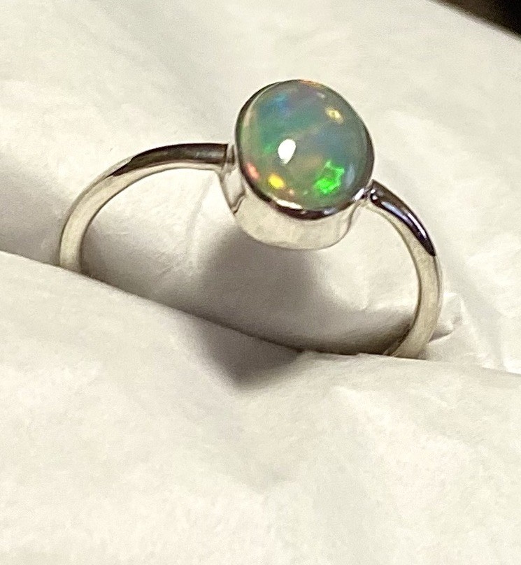 Lovely Ethiopian Opal Ring 925 Sterling Silver Size 8