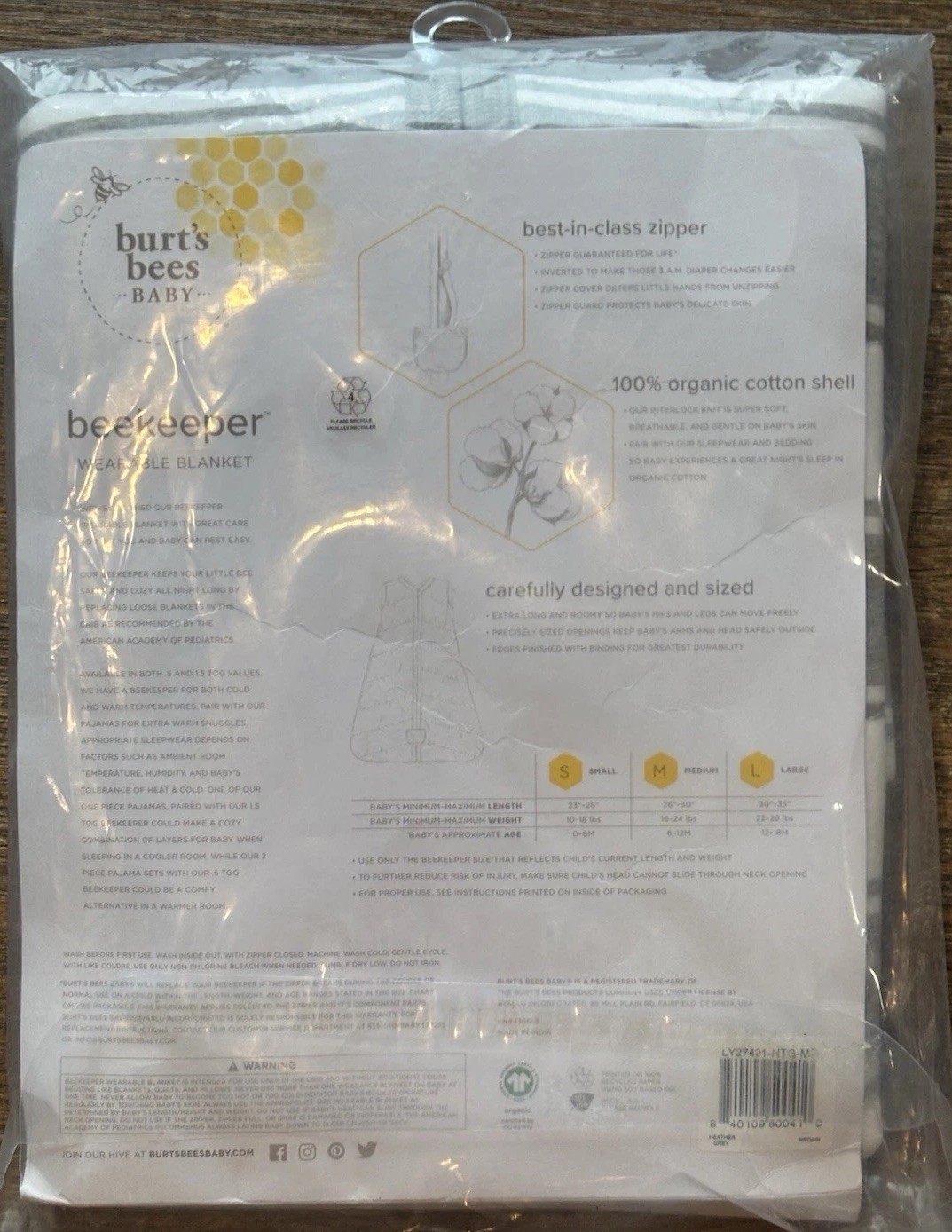 как выглядит Burts Bees Baby Wearable Blanket Size M 6-12 Months Grey Striped NEW фото