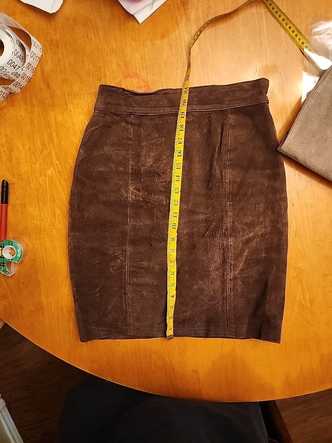 как выглядит Vintage Suede Skirt 9/10 Zipper And Snap Closure Slit Back 21 Inches Long Mini фото