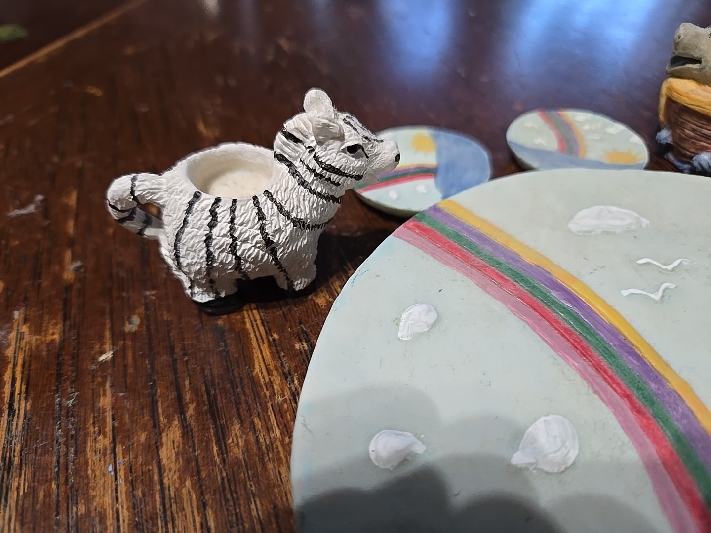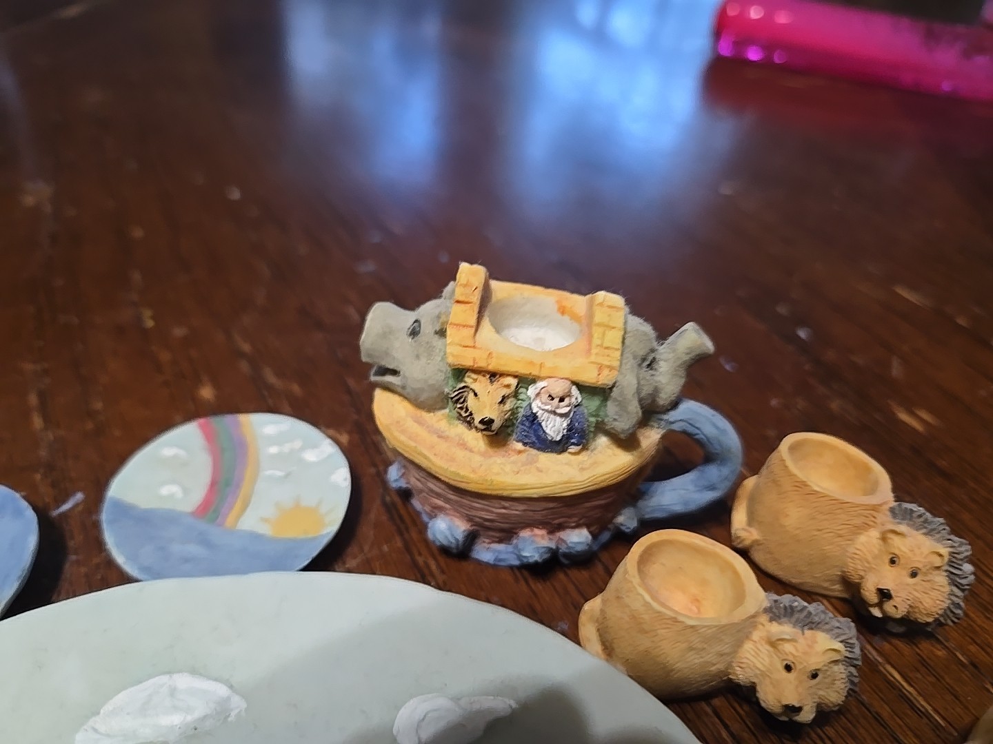 • NOAHS ARK Lions Zebra Pig Rainbow Miniature Tea Set 11 pc Bible Youngs 1995 RARE
