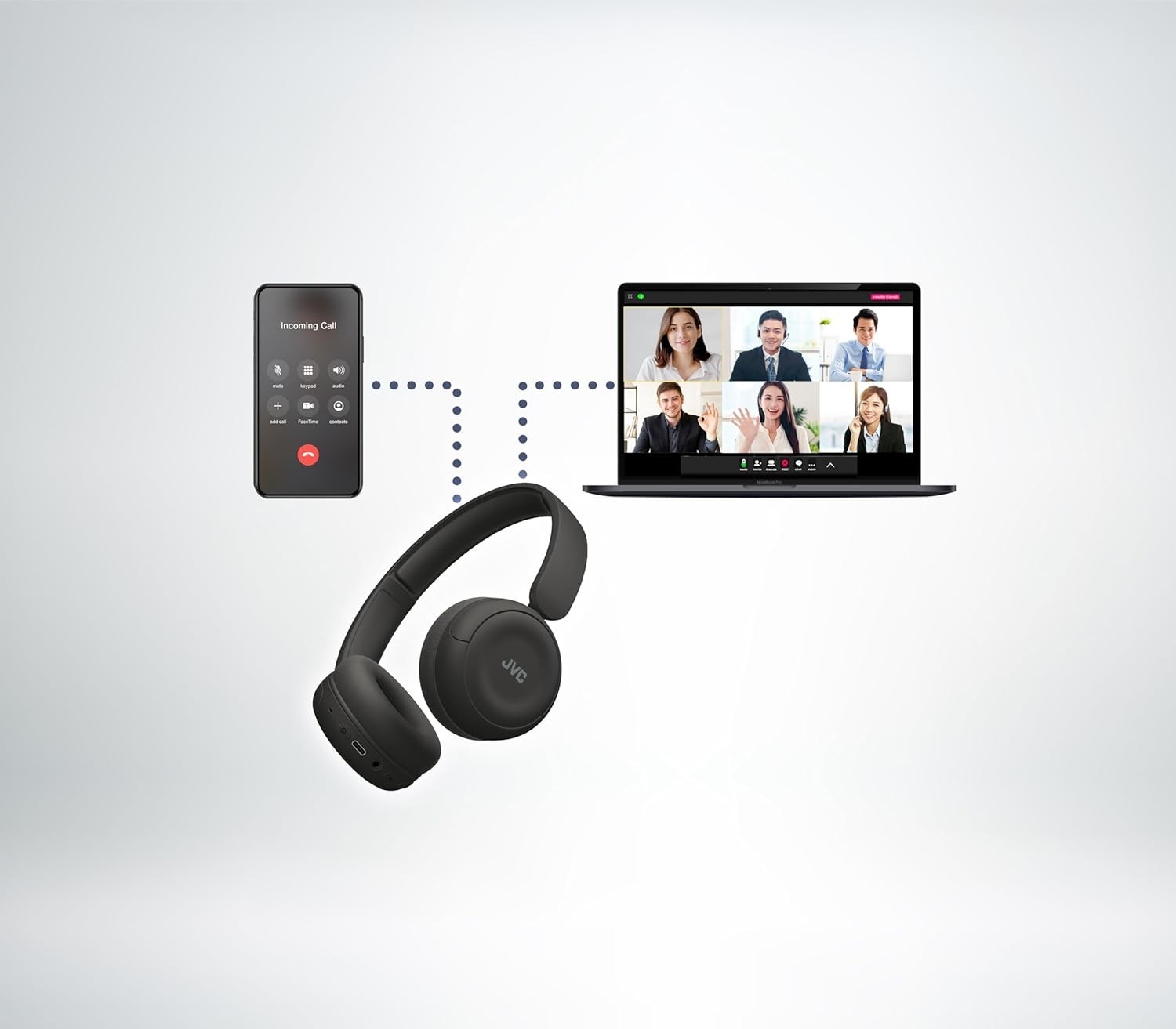 JVC Wireless Bluetooth Headphones, 50H Battery, Foldable, Mic, Matte Black