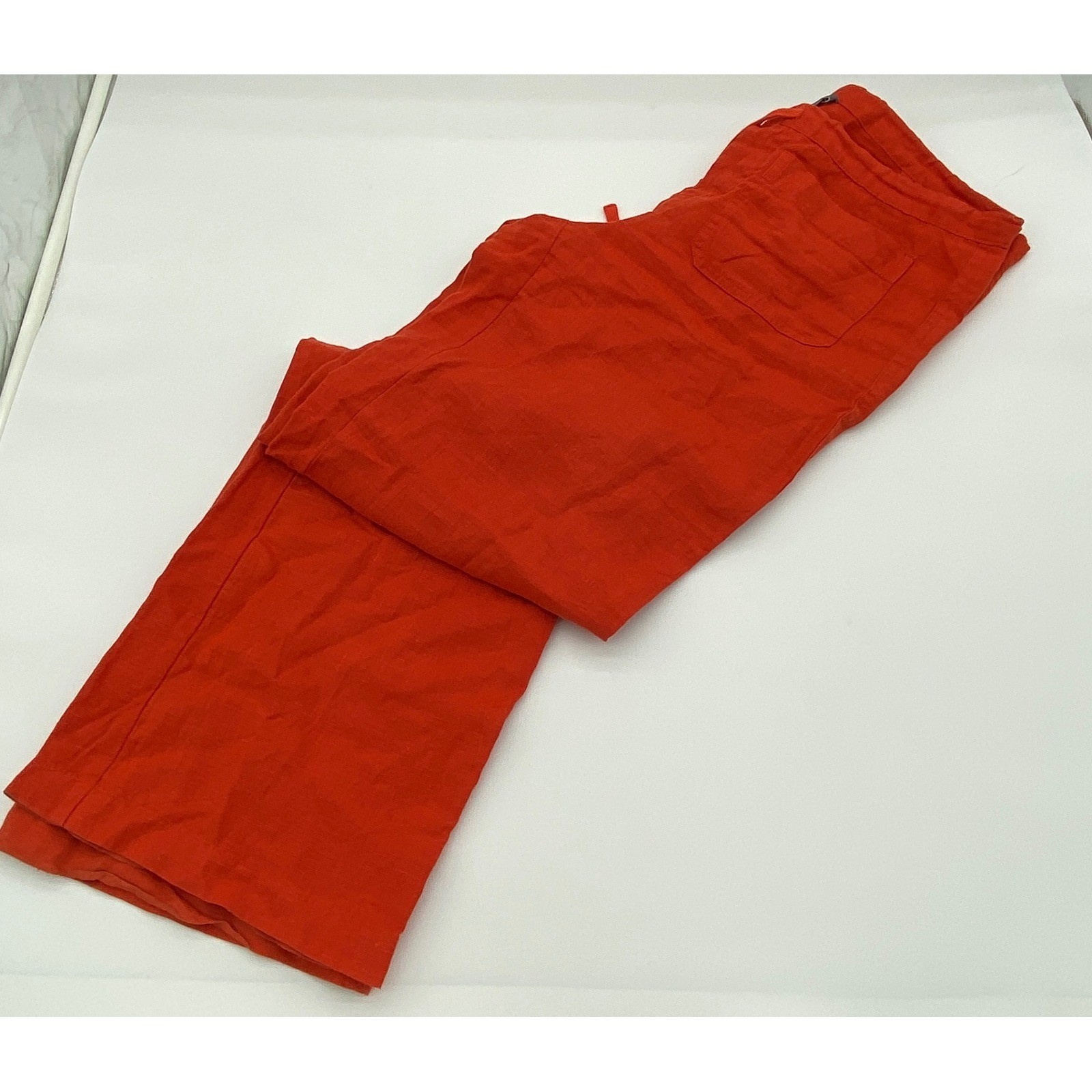 как выглядит Vince 100 Linen Wide Leg Pants Orange Drawstring Waist Casual Size S фото