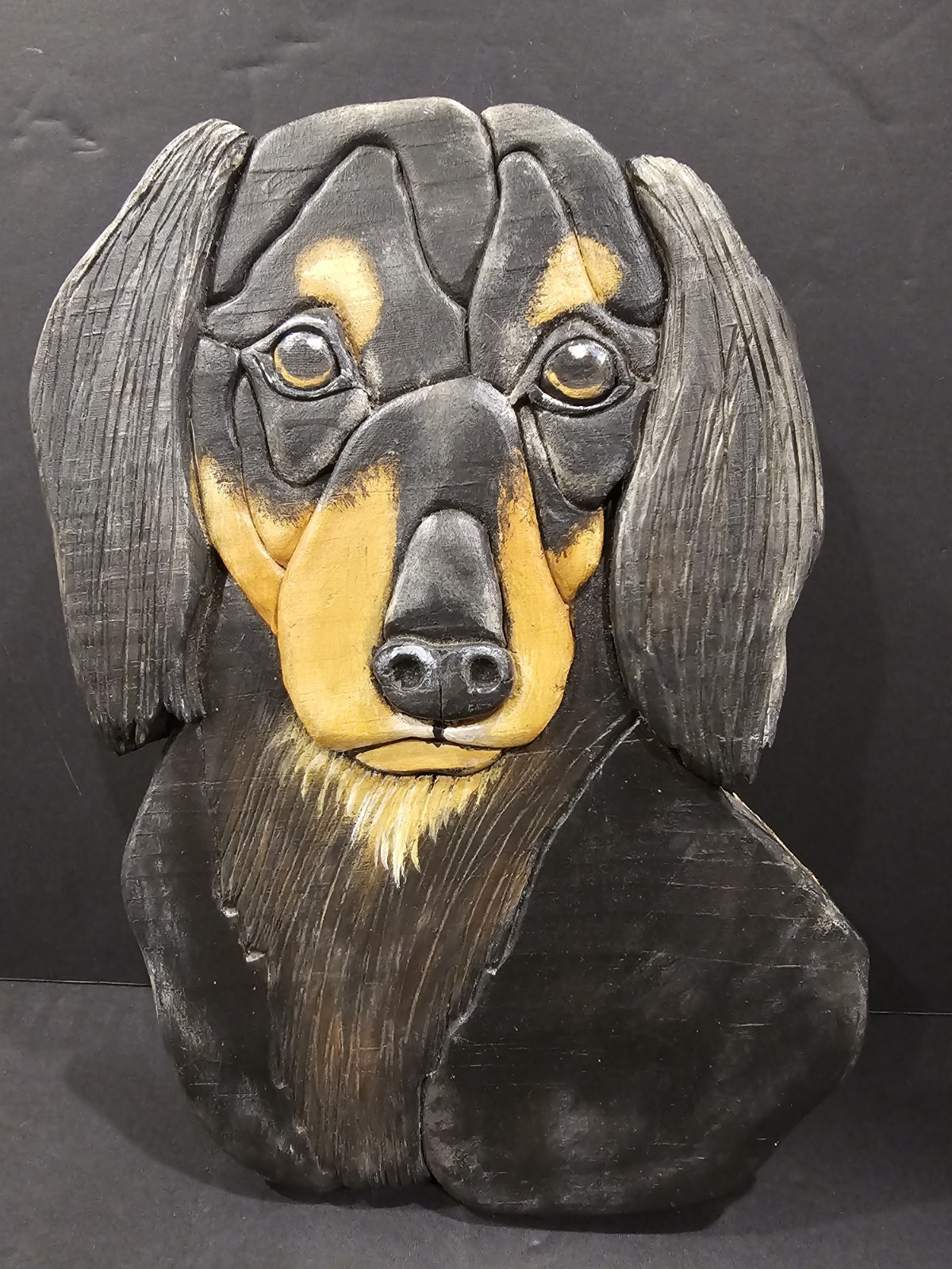 • Wooden 3D Hand Carved Dachshund Dog Wall Plaque