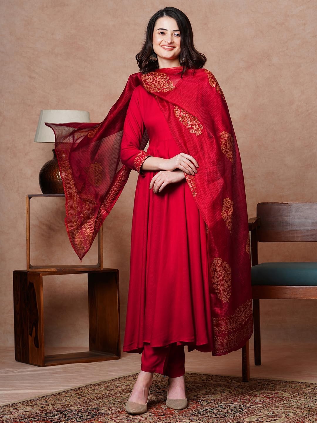 как выглядит Womens Rayon Blend Solid Anarkali Kurta with Pant Dupatta фото