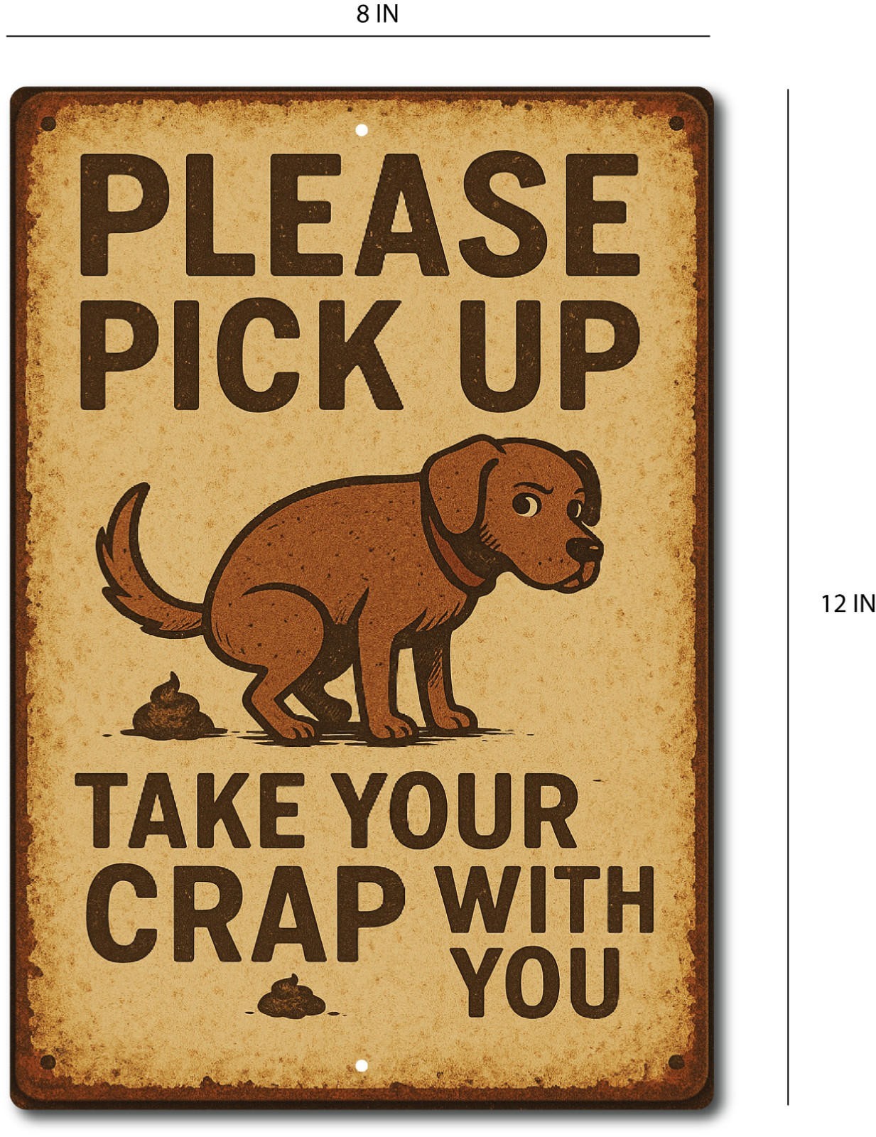 Dog Poop Yard Sign Aluminum 8x12 Outdoor Novelty Funny Fence Sign