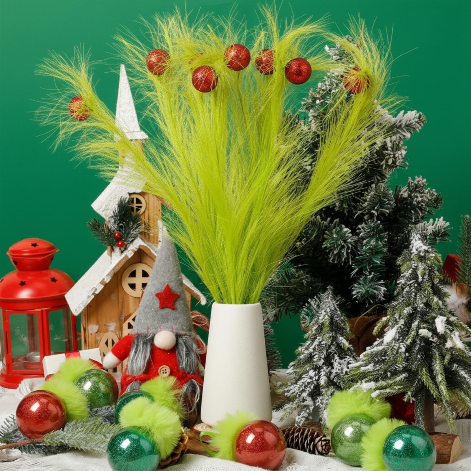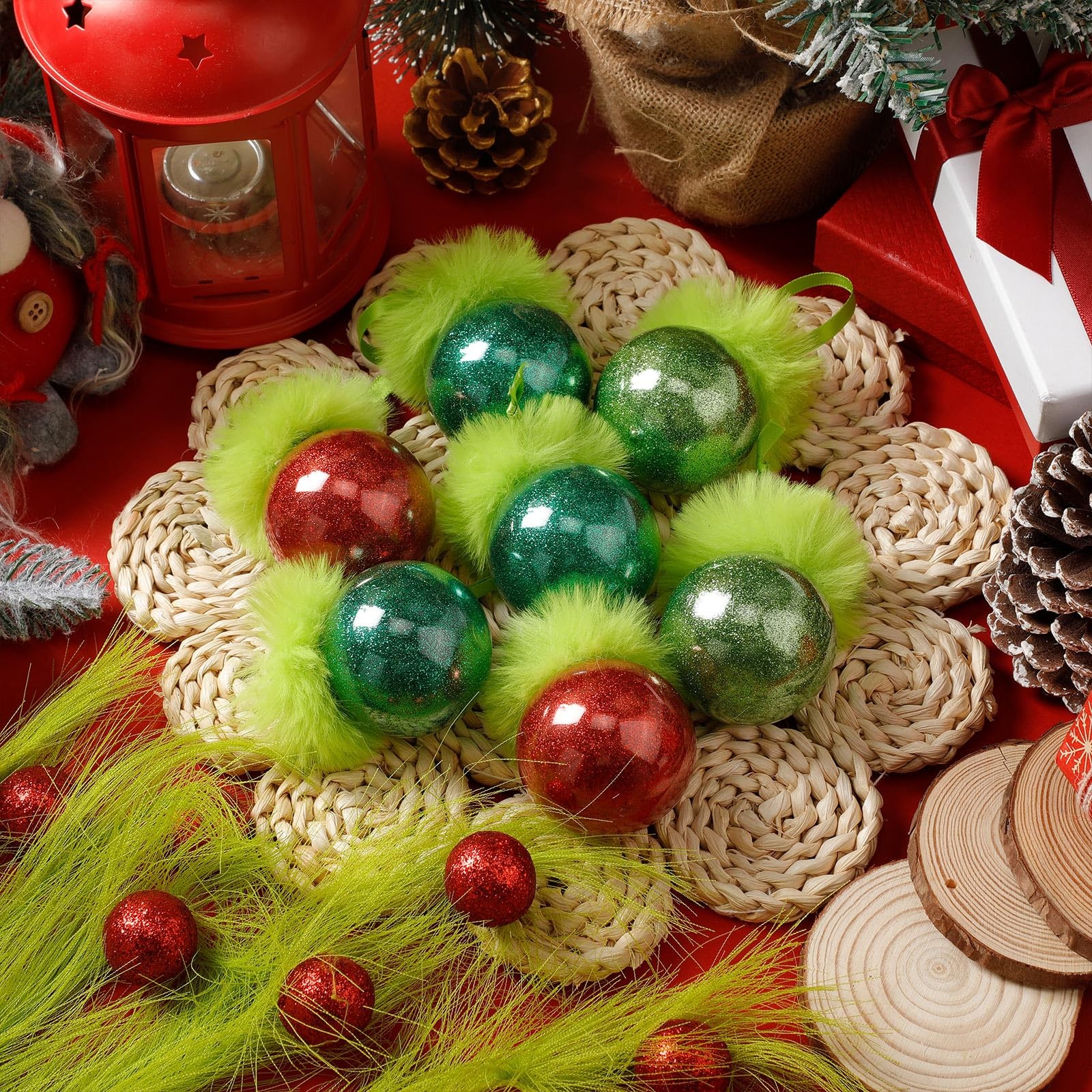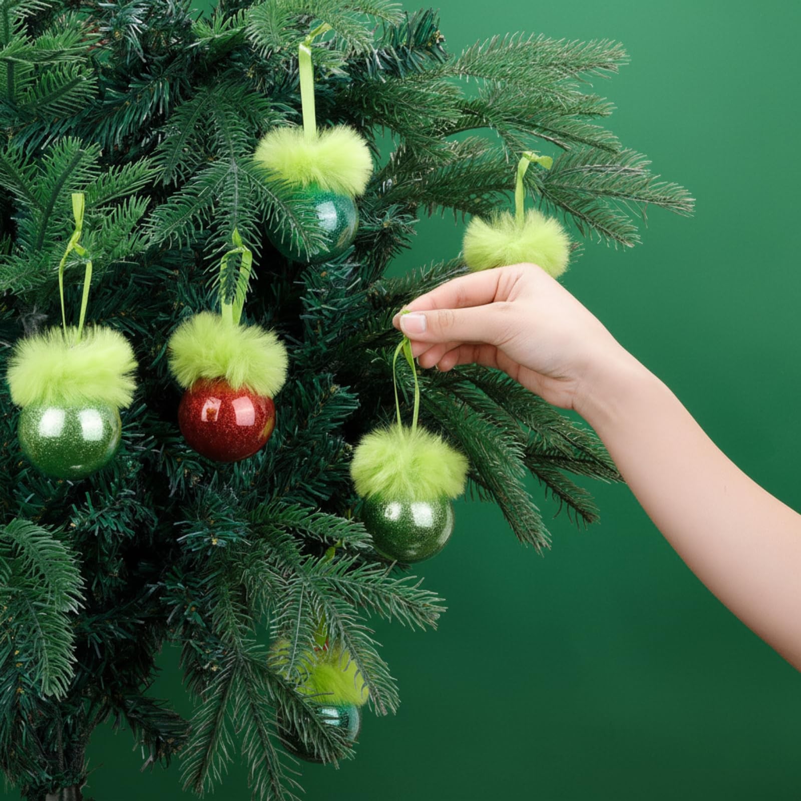 как выглядит 32 Pcs Lime Green Furry Christmas Ball Ornaments for Xmas Tree, Fuzzy Ball wi... фото