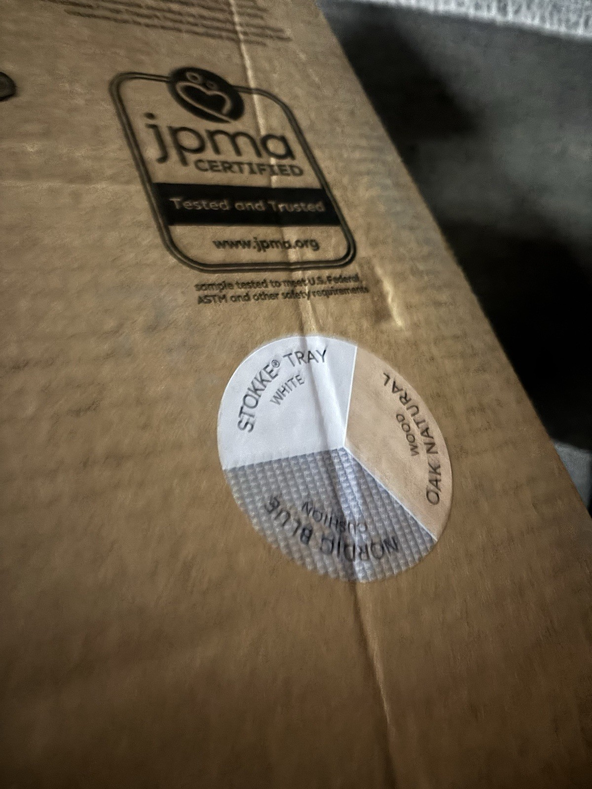 как выглядит Tripp Trapp High Chair Complete Oak Natural/Nordic Blue Cushion/White Tray фото