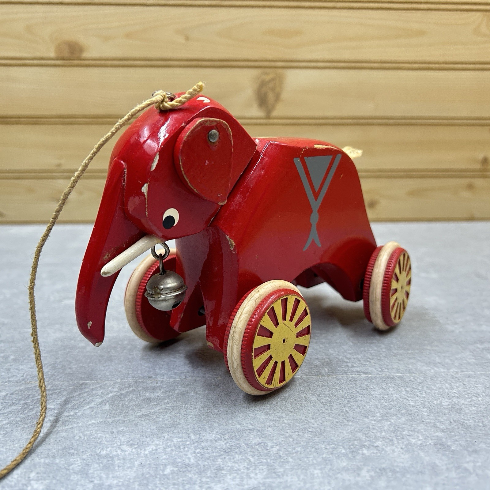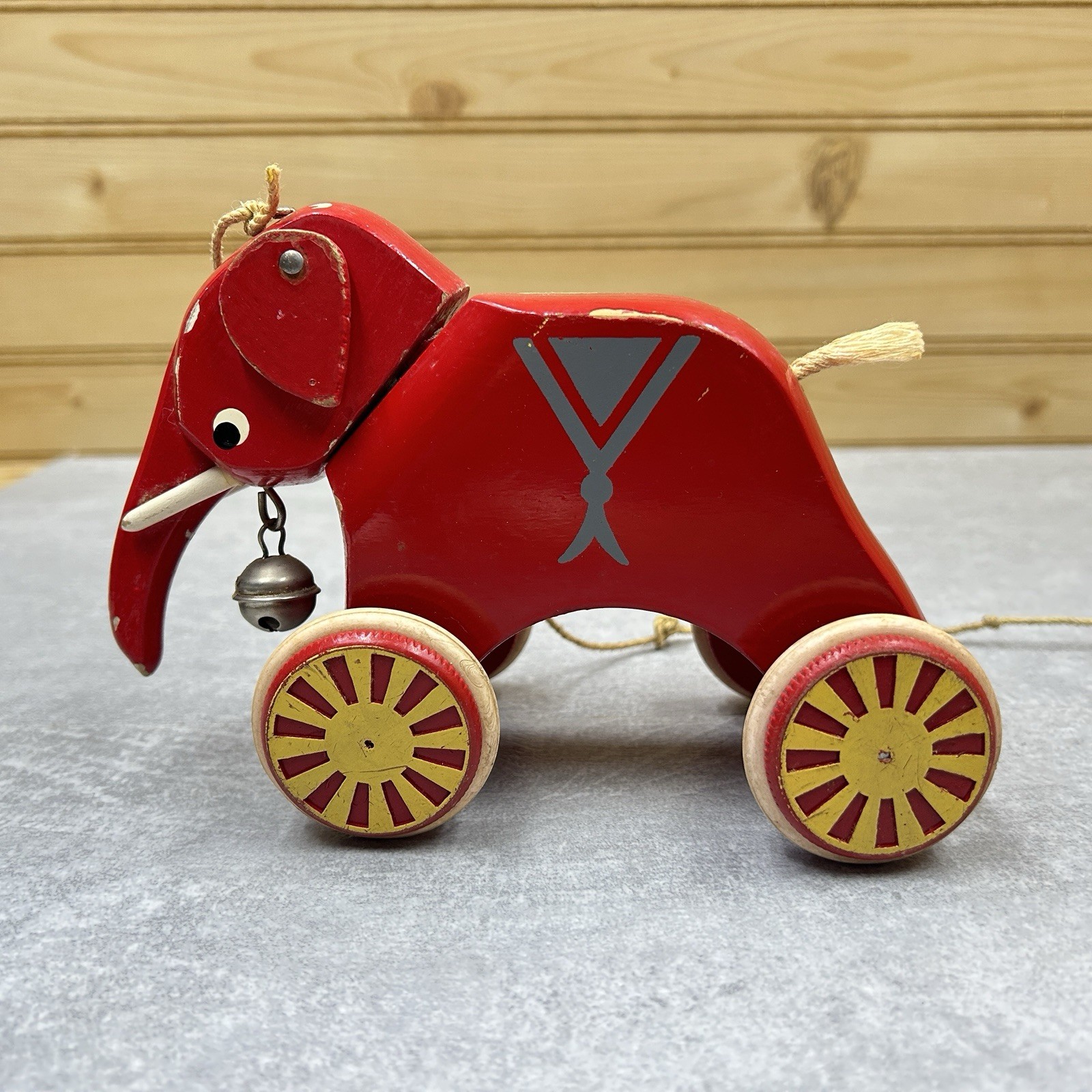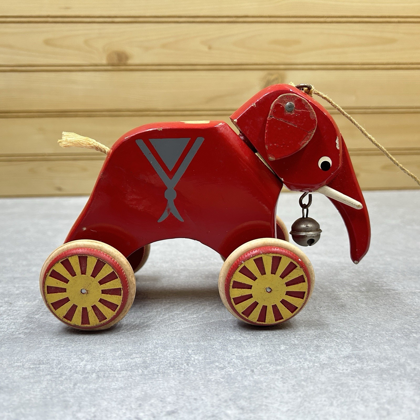 Vintage BRIO Sweden Swedish WOOD Wooden TOY Elephant Pull-Along