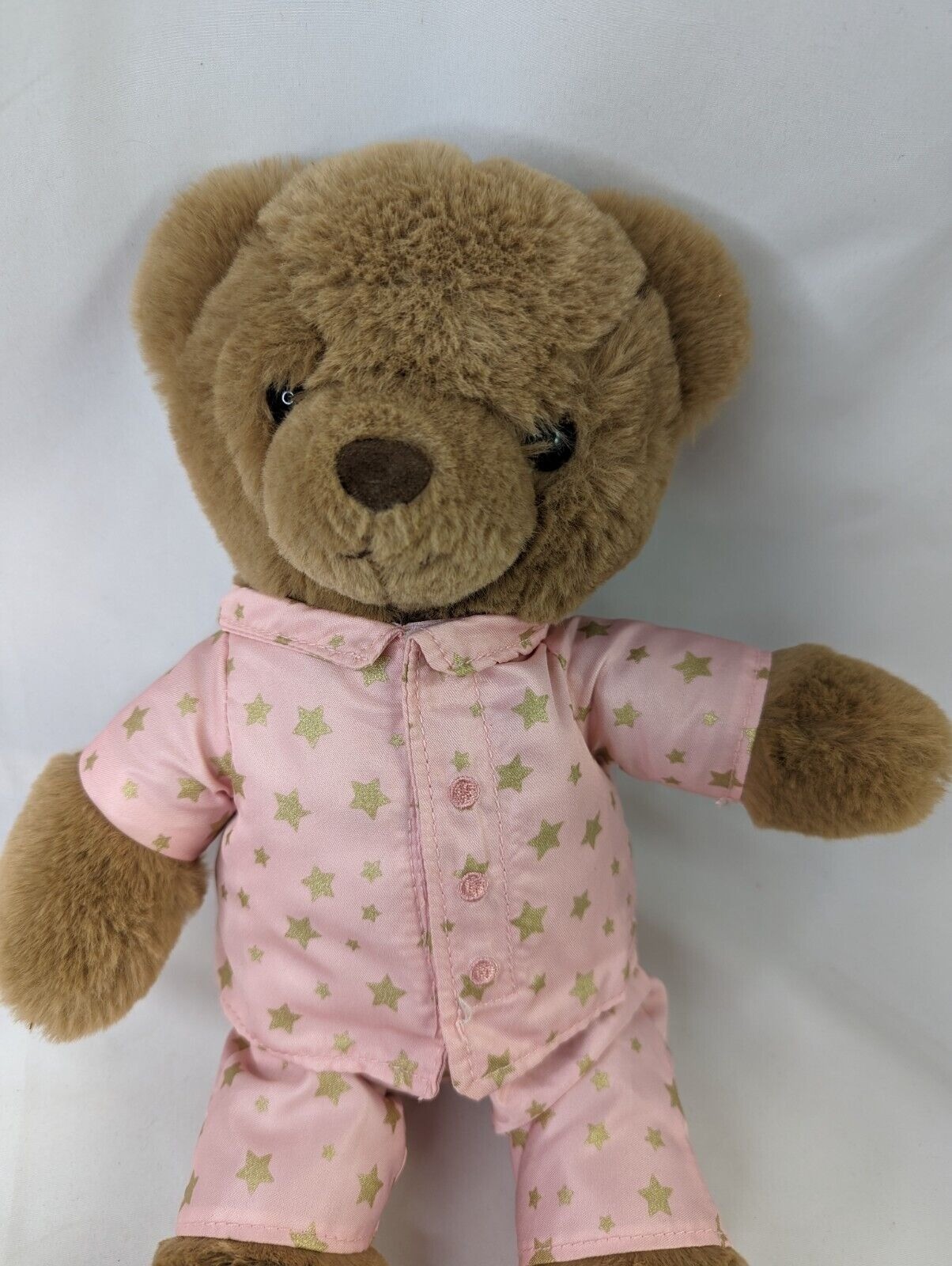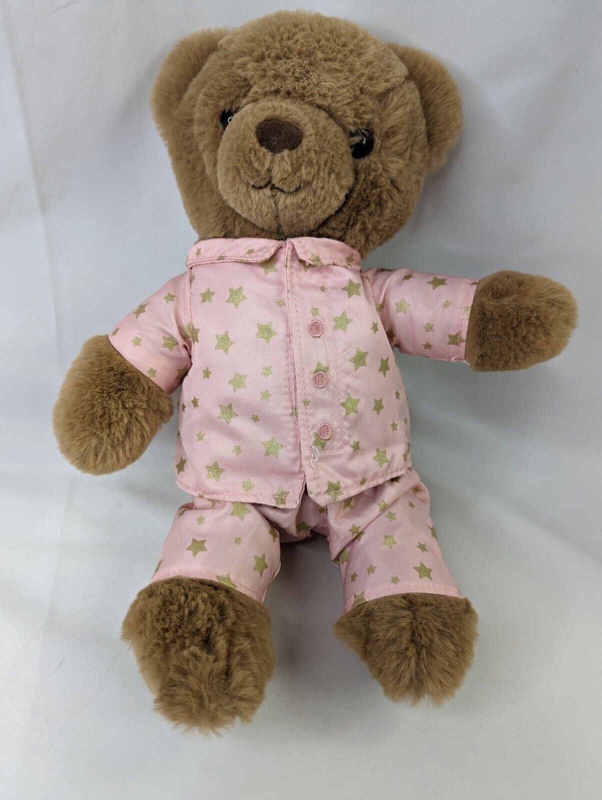 FAO Schwarz Brown Bear Plush 12 Inch Pink Gold Star Pajamas Stuffed Animal Toy