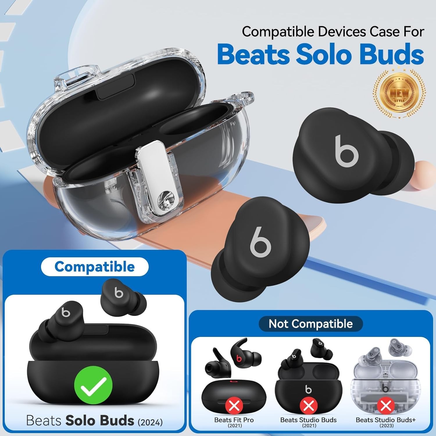 3-in-1 Secure Lock Case for Beats Solo Buds 2024 with Cleaning Kit Keychai...