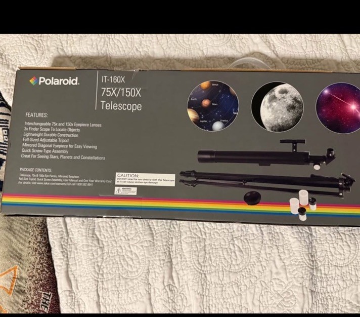 Polaroid IT-160X 75X/150X Refractor Telescope 150x w/ Tripod 3x Finder Scope