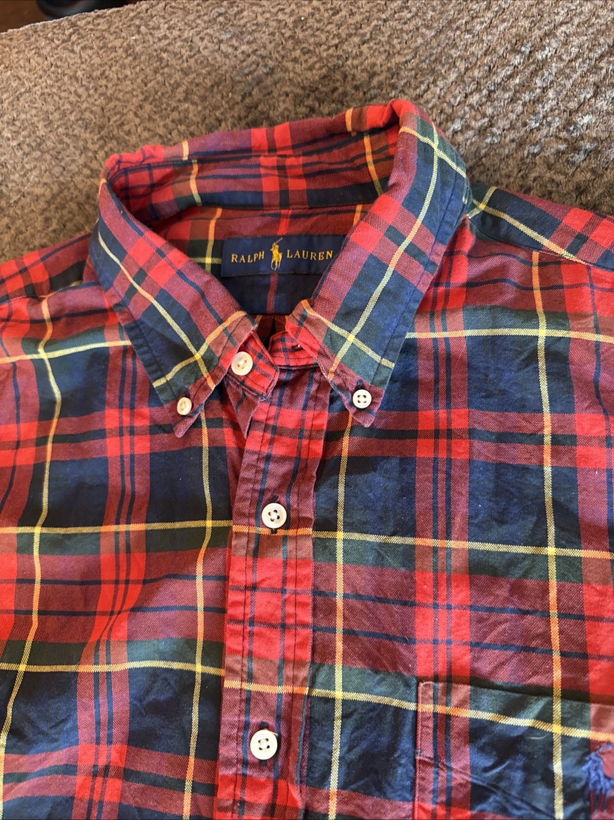 Ralph Lauren Men s XL Navy And Red Plaid Button Down Dress Shirt