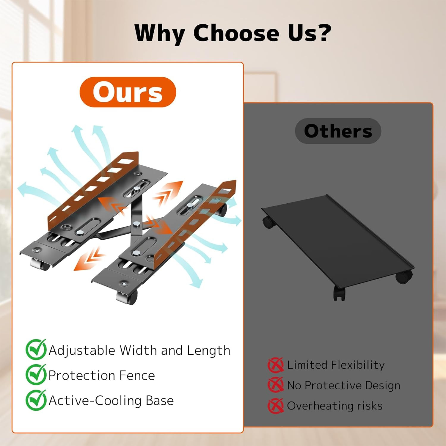 Computer Tower Stand - under Desk PC Stand for Floor with Rolling Caster Wheels,