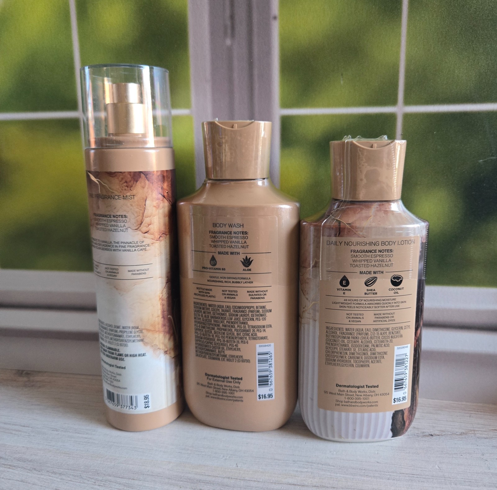 как выглядит bath and body works vanilla cafe shower gel body lotion fine fragrance mist фото