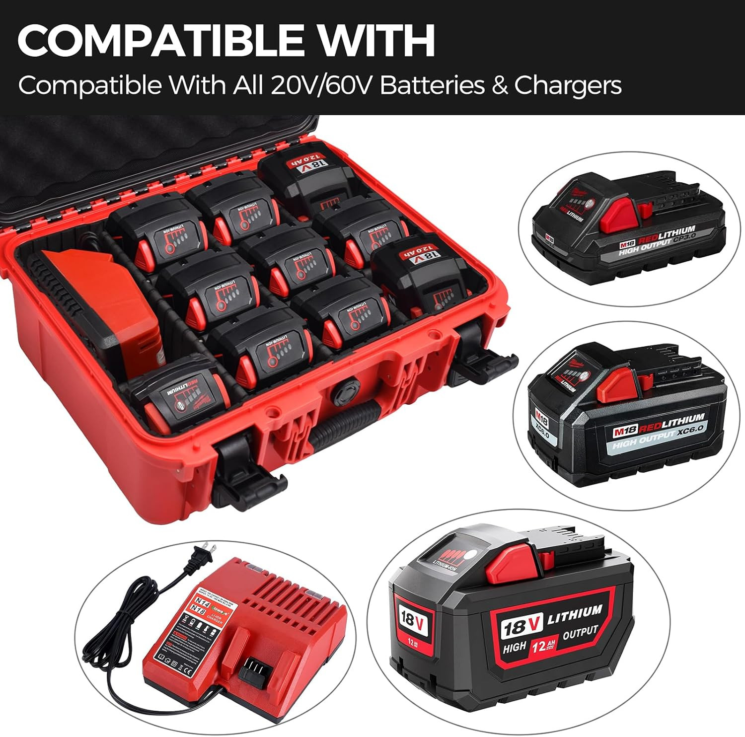 Case for Milwaukee Battery - Extra Large Hard Storage Box with Adjustable Divide
