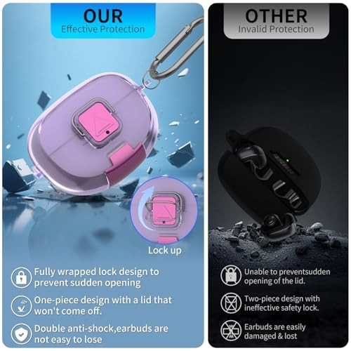 for Bose Ultra Open Earbuds Case with Secure Lock Phone Clear Light Purple