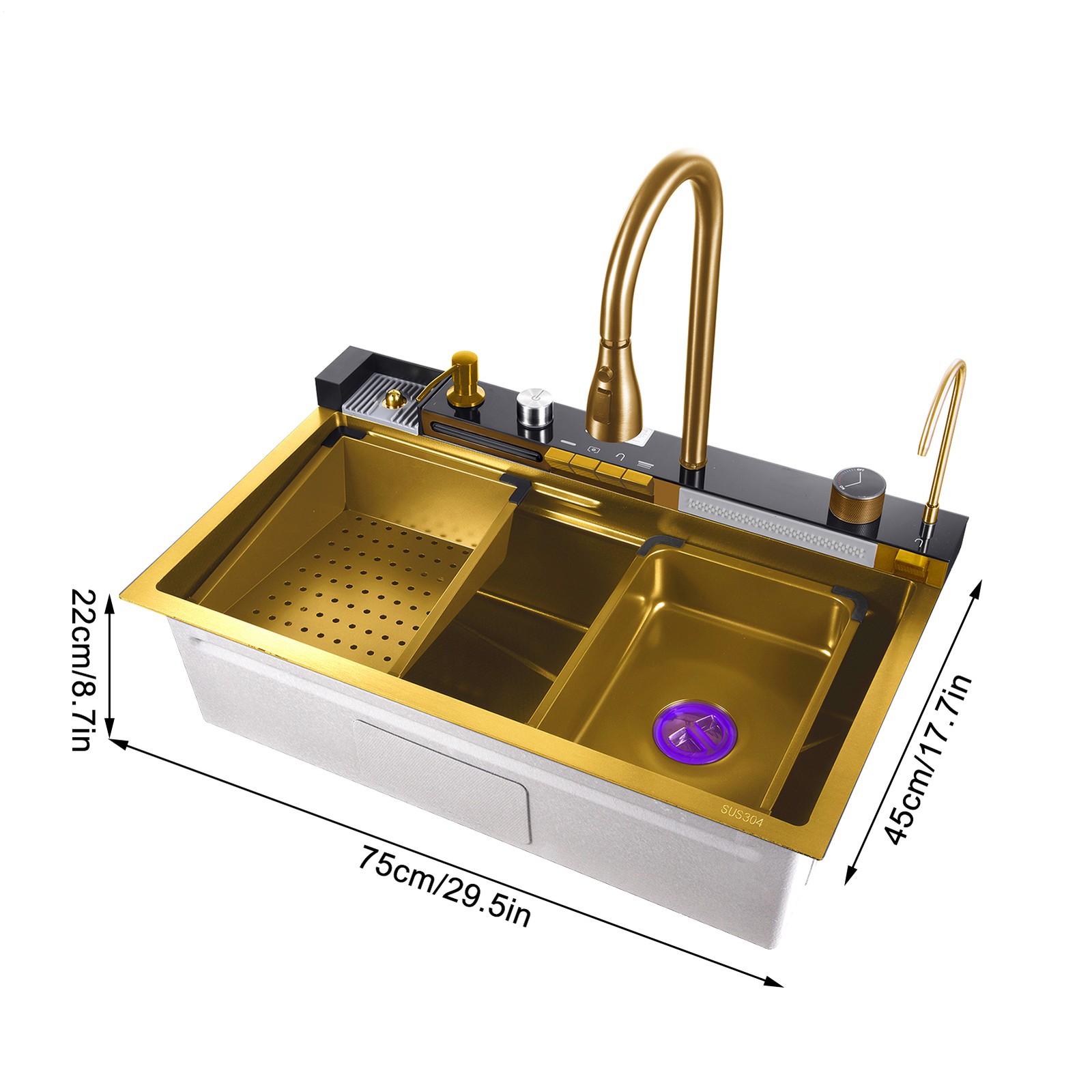Gold 29.5 in Flying Rain Stainless Steel Waterfall Kitchen Sink Pull Out Faucet