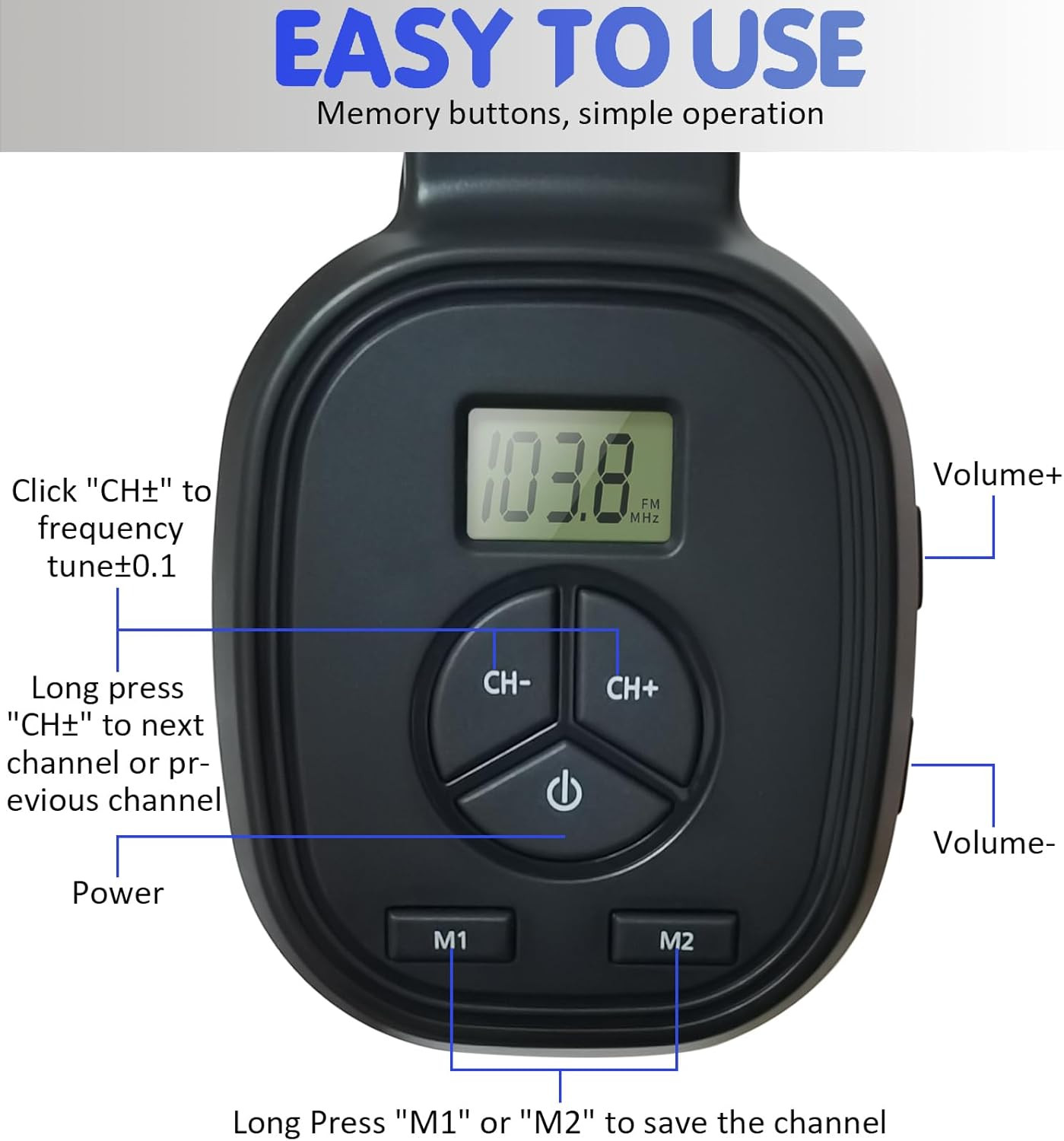 Portable Personal FM Radio Headphones with Good Reception, LED Display, Soft Ear
