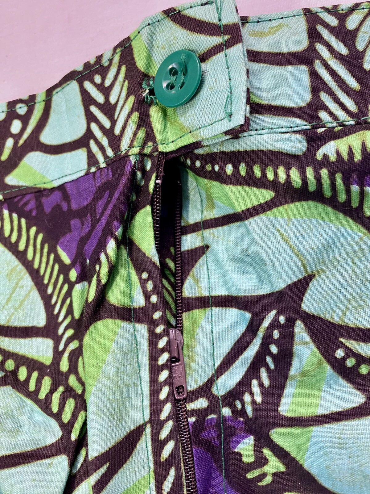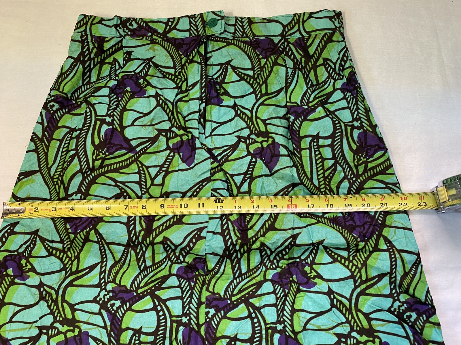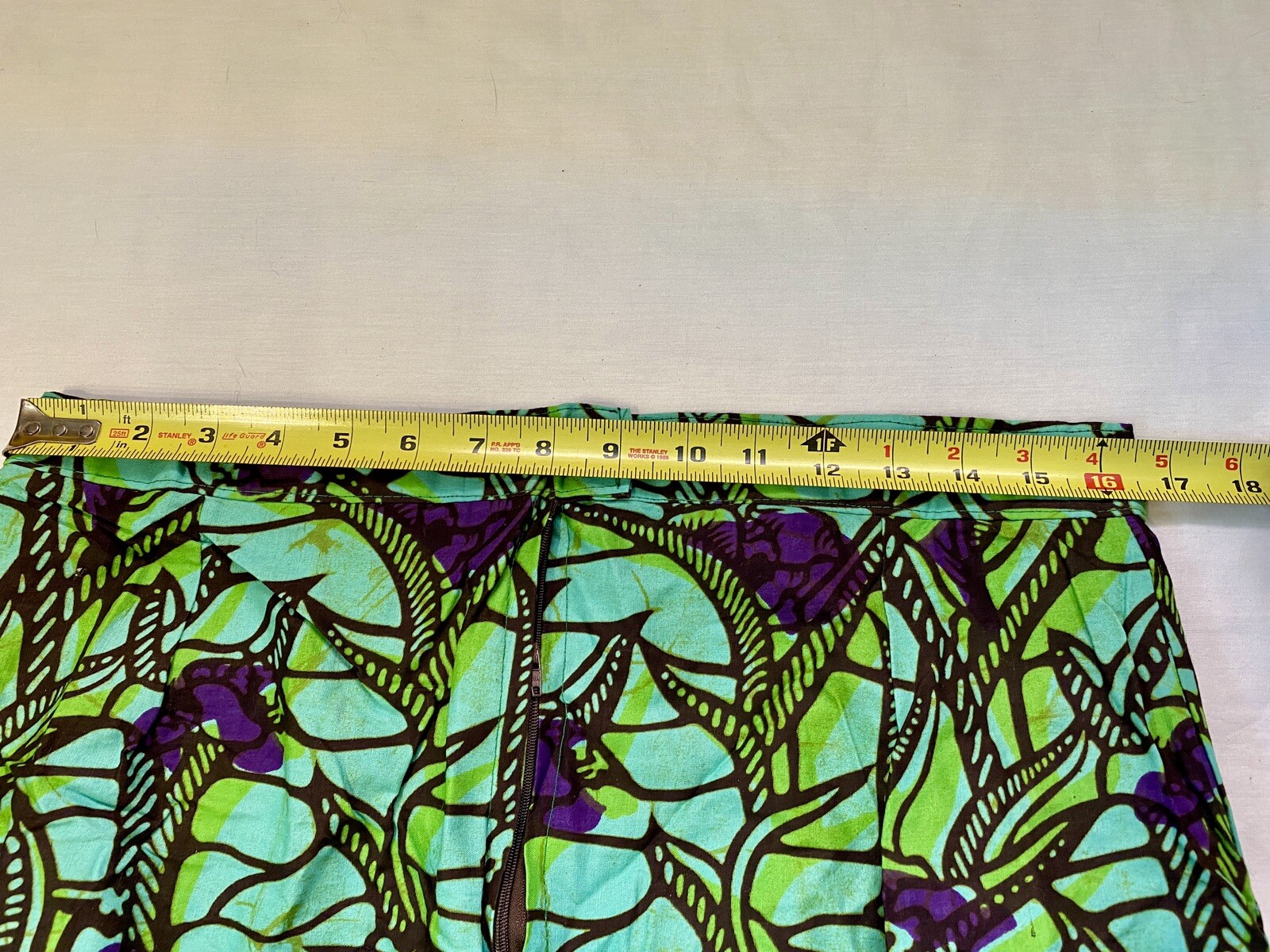 Handmade Veritable Wax Print Fabric African Skirt - 32 Length Aqua Green Purple