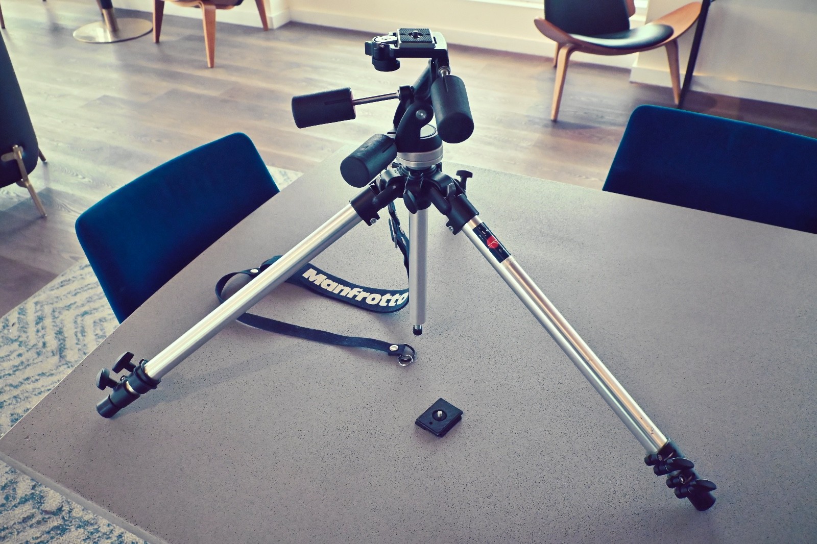 Manfrotto 190 tripod with 141RC head carrying Strap.