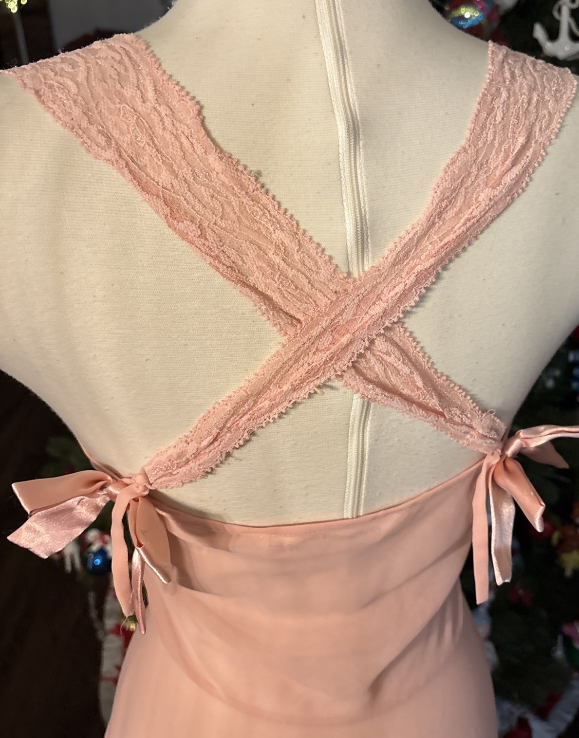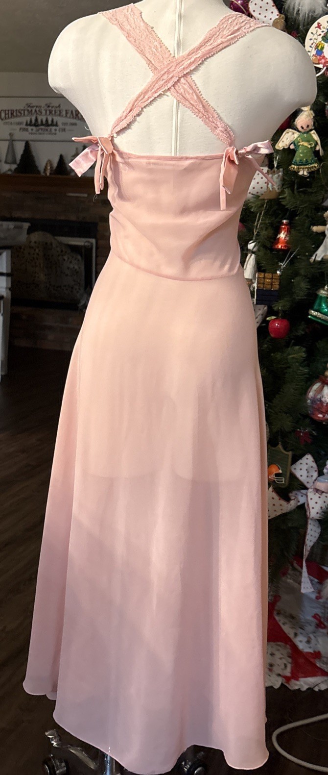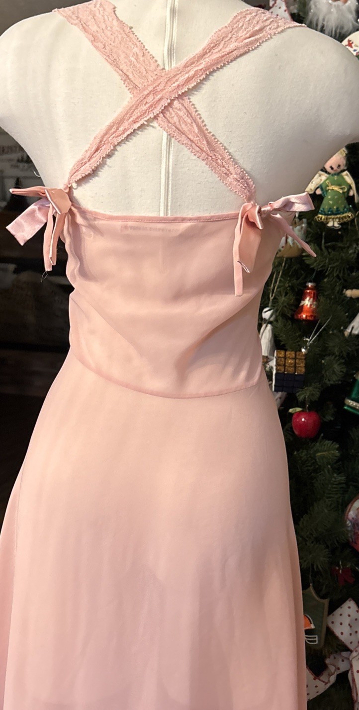 как выглядит Vintage 90s Y2K Light Pastel Peach Victorias Secret Silk Maxi Slip Dress Lace M фото