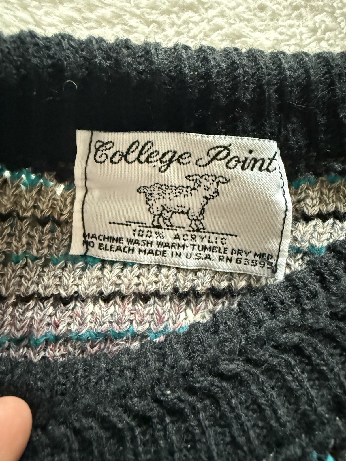 как выглядит Vintage 90 s College Point Womens Medium Geometric Pullover Sweater Made In USA фото