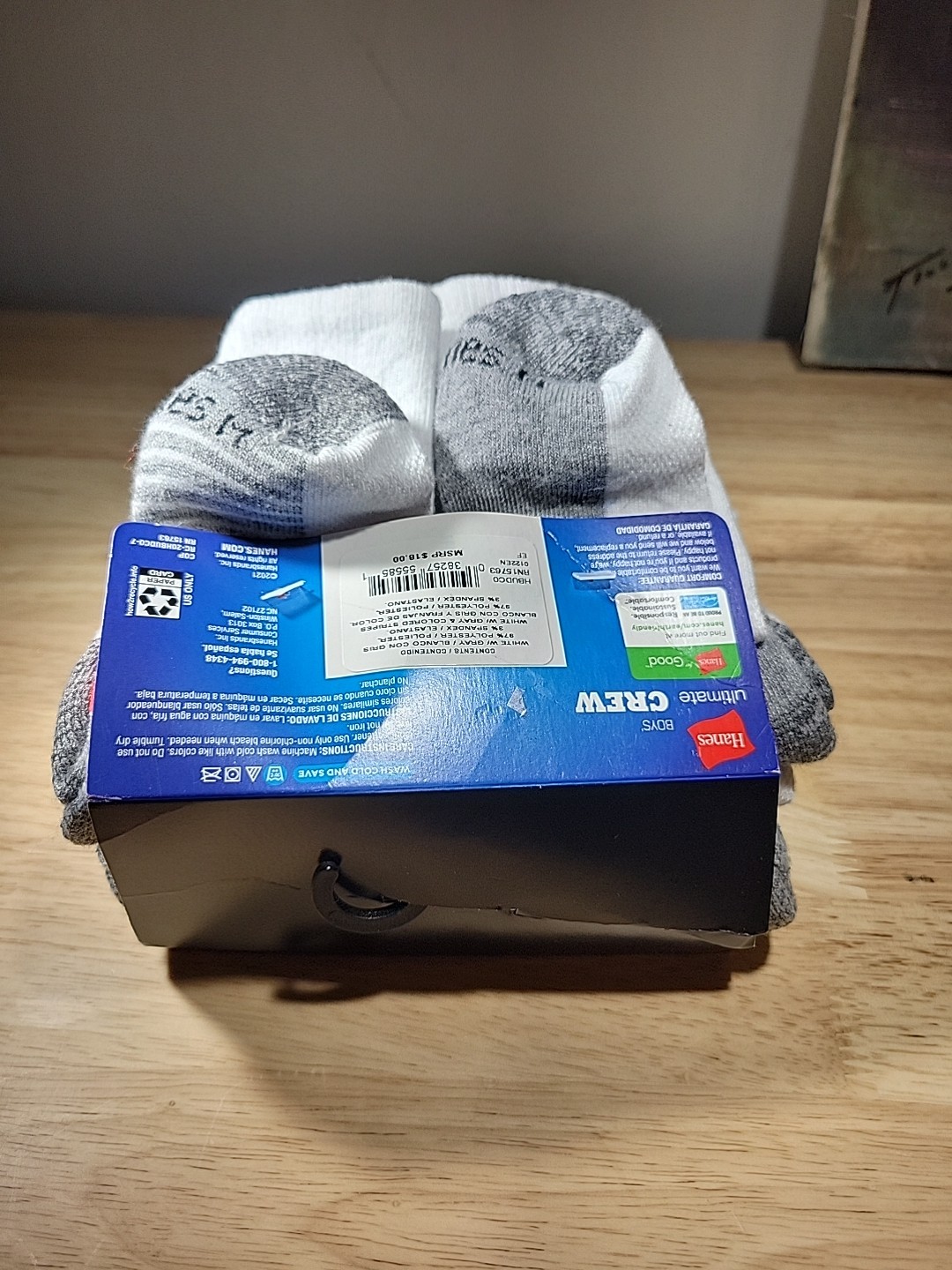 как выглядит Hanes 10-Pair White Multi Crew Socks Boys Size M Fits Shoe Size 9-2.5 фото