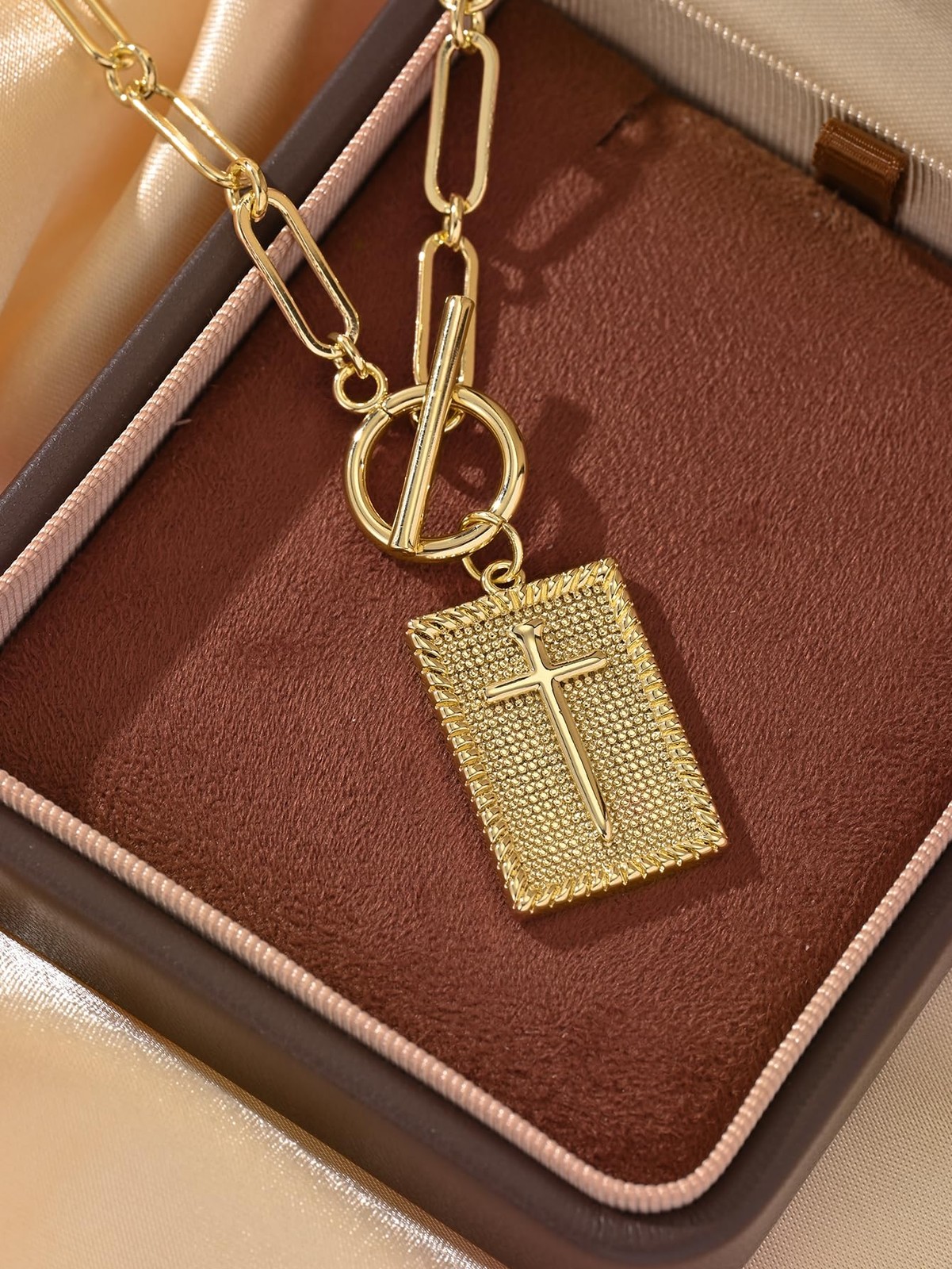 как выглядит HERSIN Cross Pendant Necklaces for Women Trendy, Dainty 14K Gold normal, фото