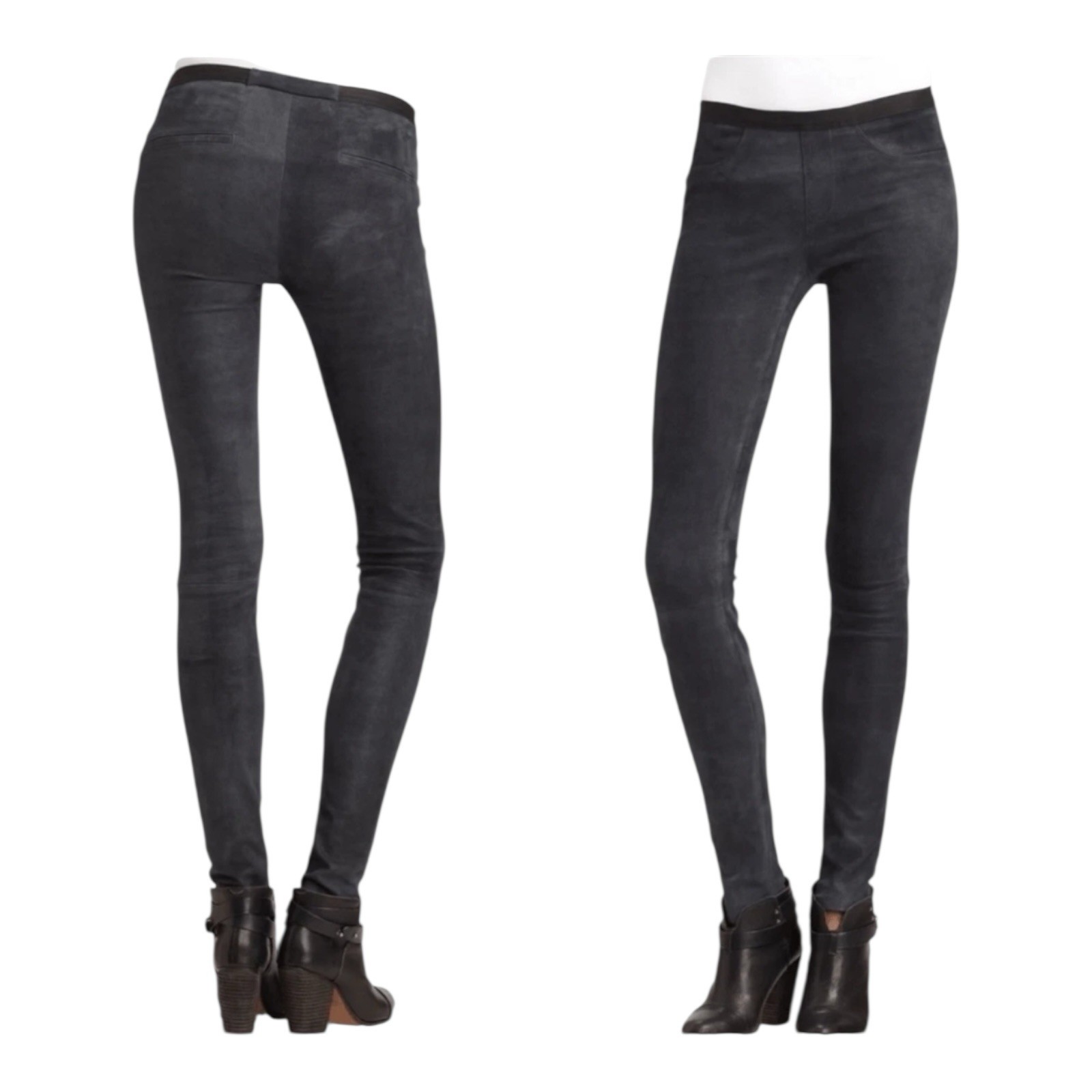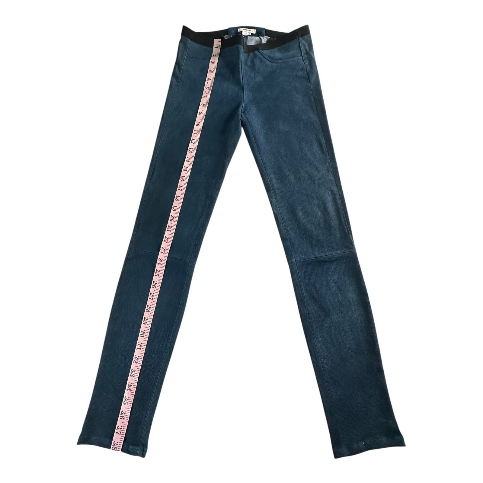 как выглядит HELMUT LANG Blue Patina Suede Lamb Leather Leggings - Size 6 фото