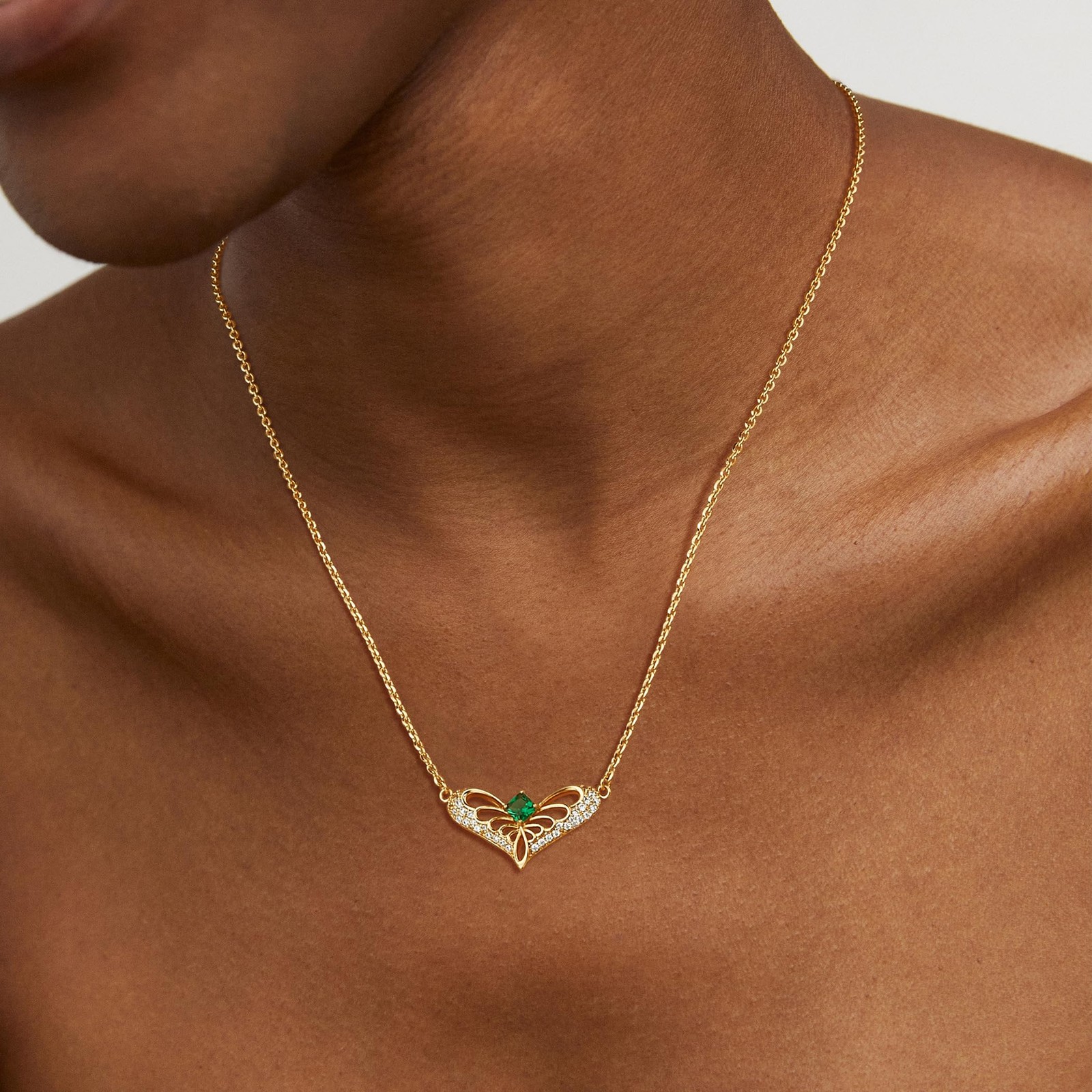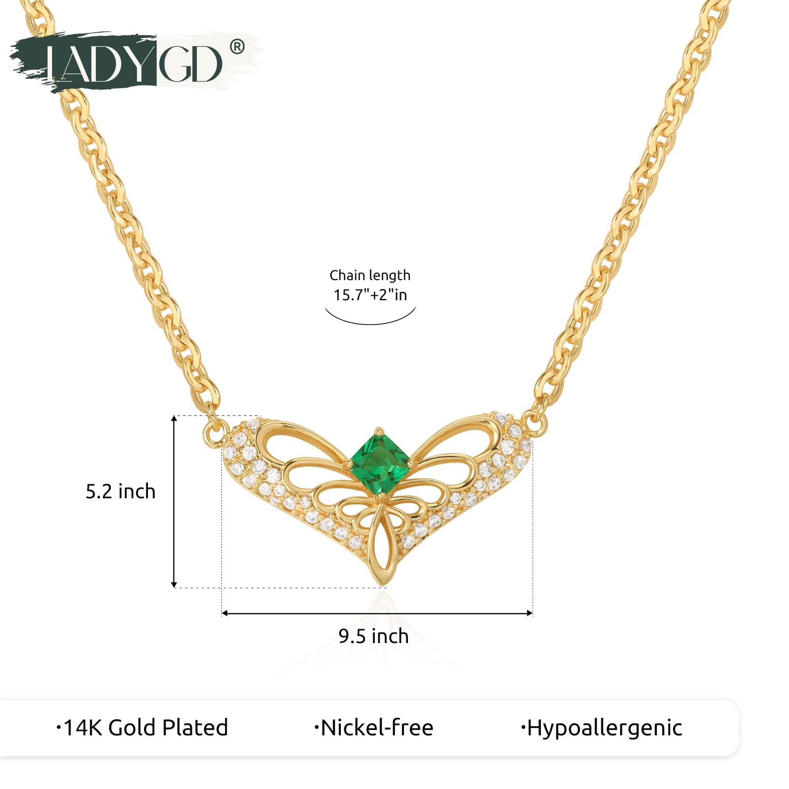 LADYGD Gold Heart Necklace for Women 14K Plated Cubic Love Wings