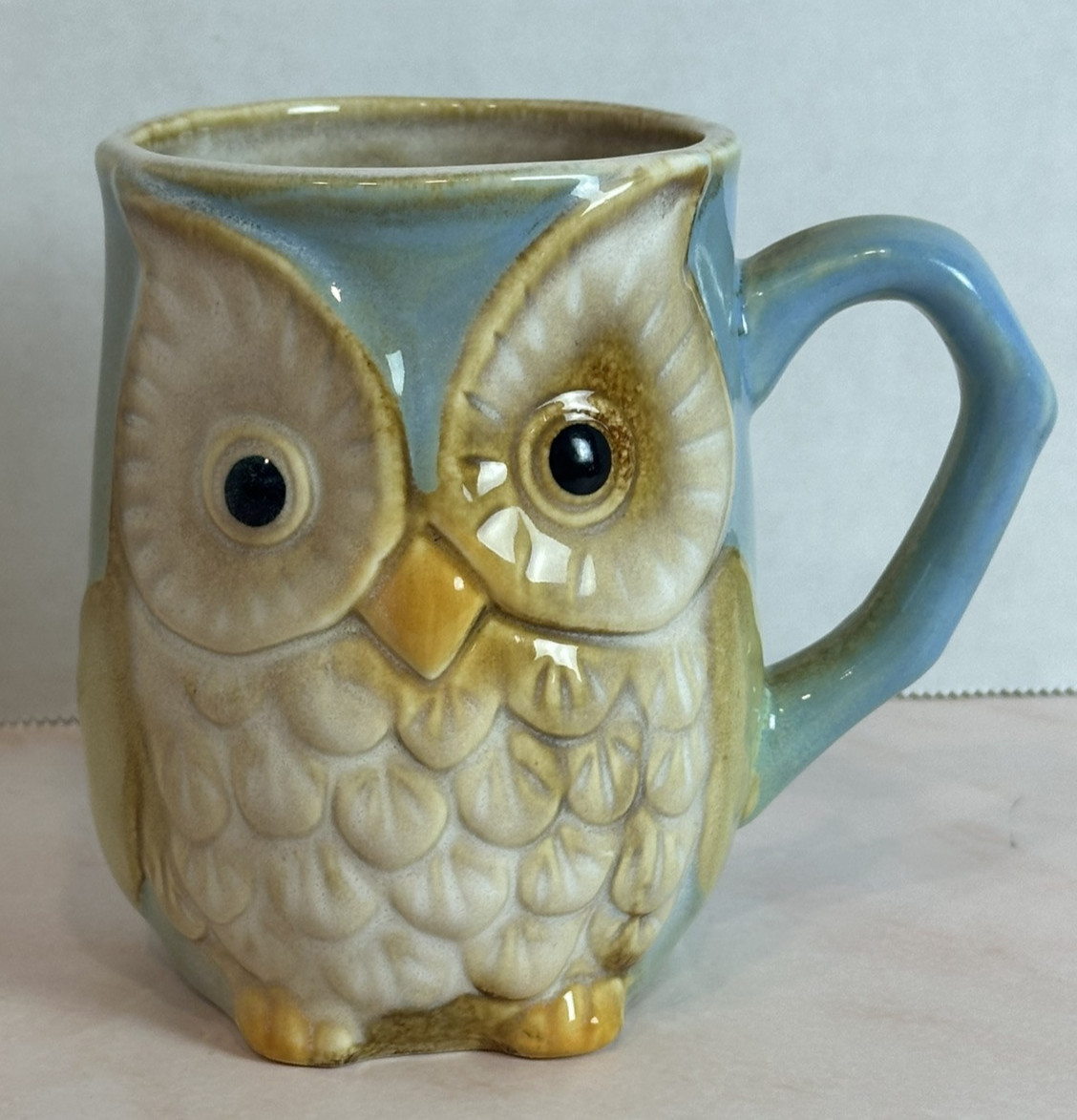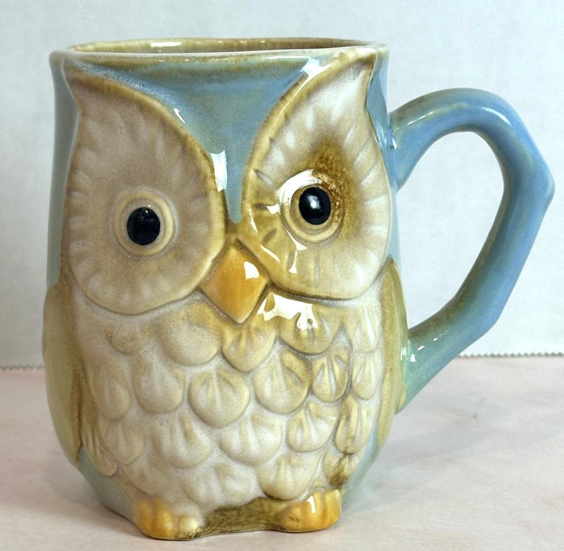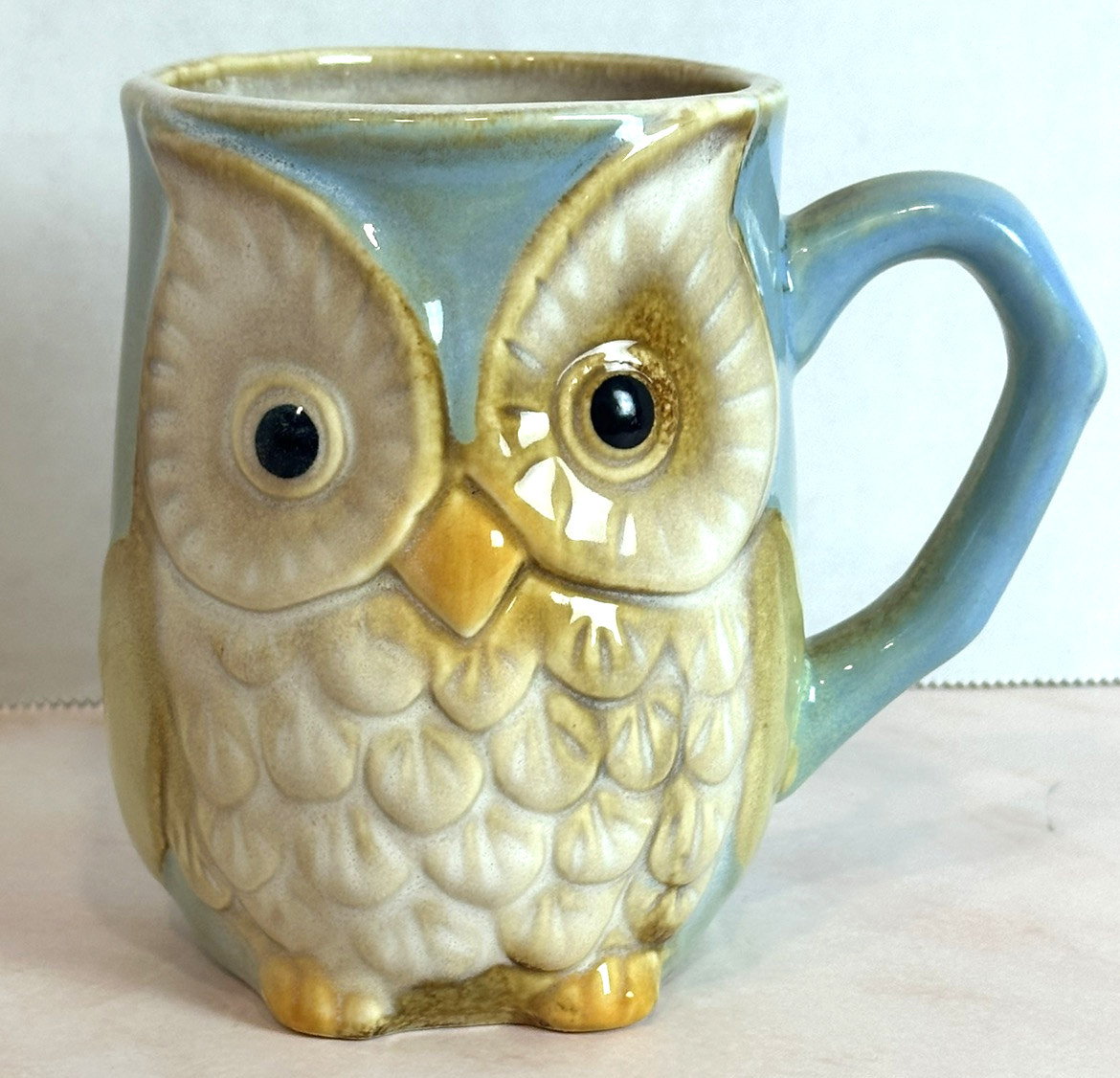 • Coffee Mug Burton Burton Blue Green Owl Porcelain Tea Coffee Mug