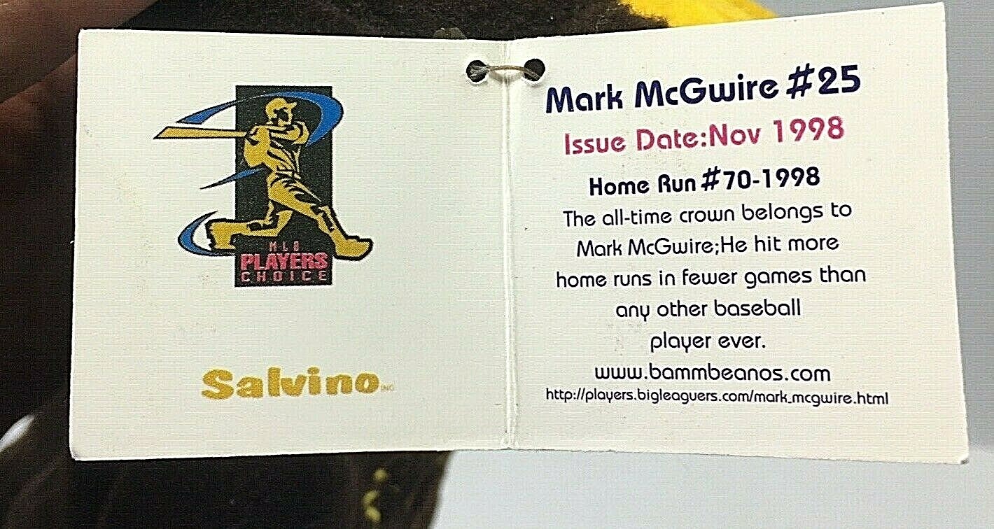• MLB McGwire 25 Home Run 70 Beanie Baby Salvino's BAMM BEANO's 8" Plush
