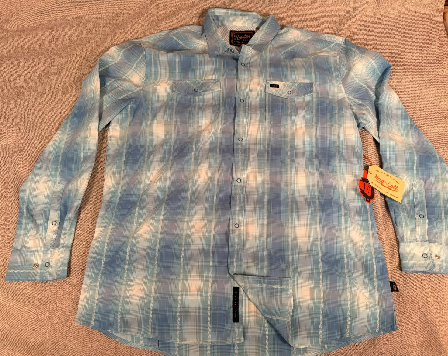 как выглядит Howler Bros Mens H Bar B Tech Vented Snap Longsleeve Shirt Andros Blue XL NWT фото