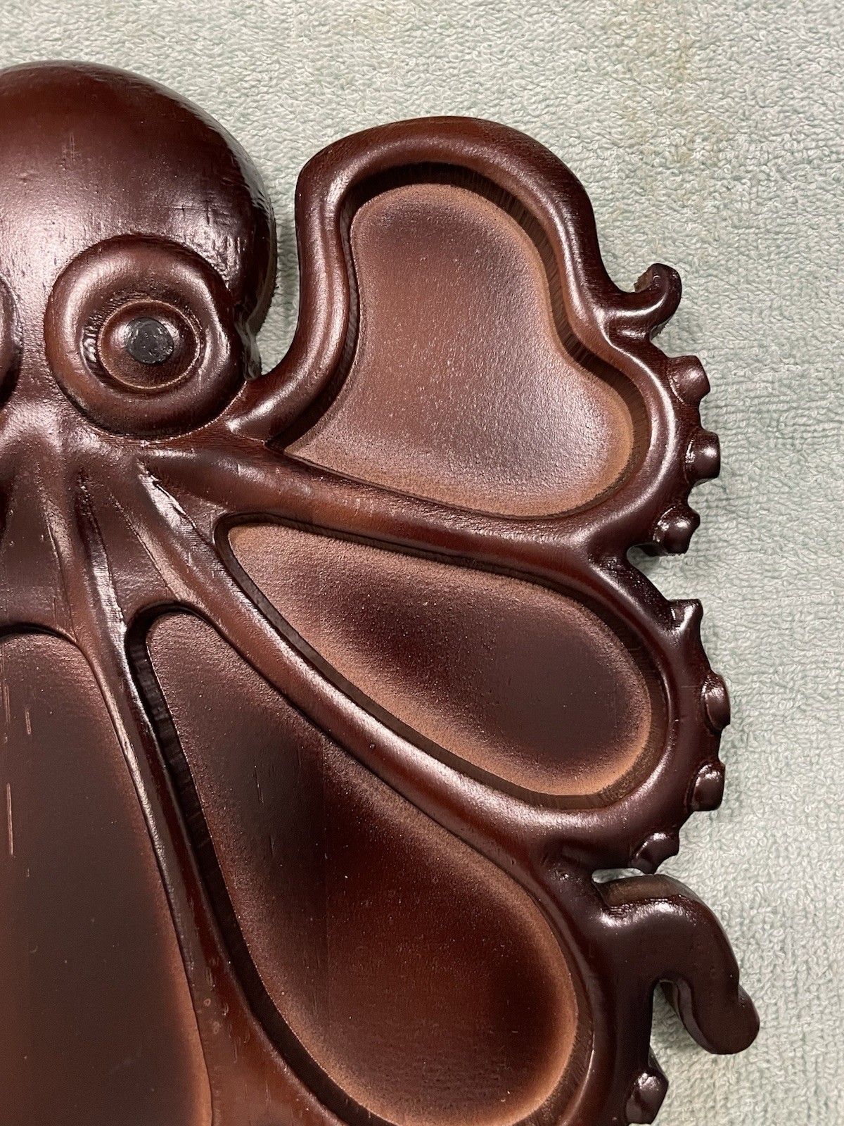 как выглядит Vintage Octopus Carved Wood Food Or Trinket Tray Decor Nautical Sealife фото